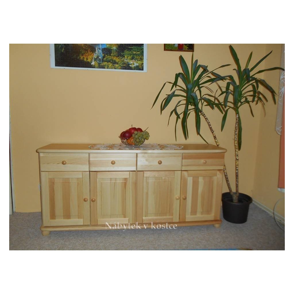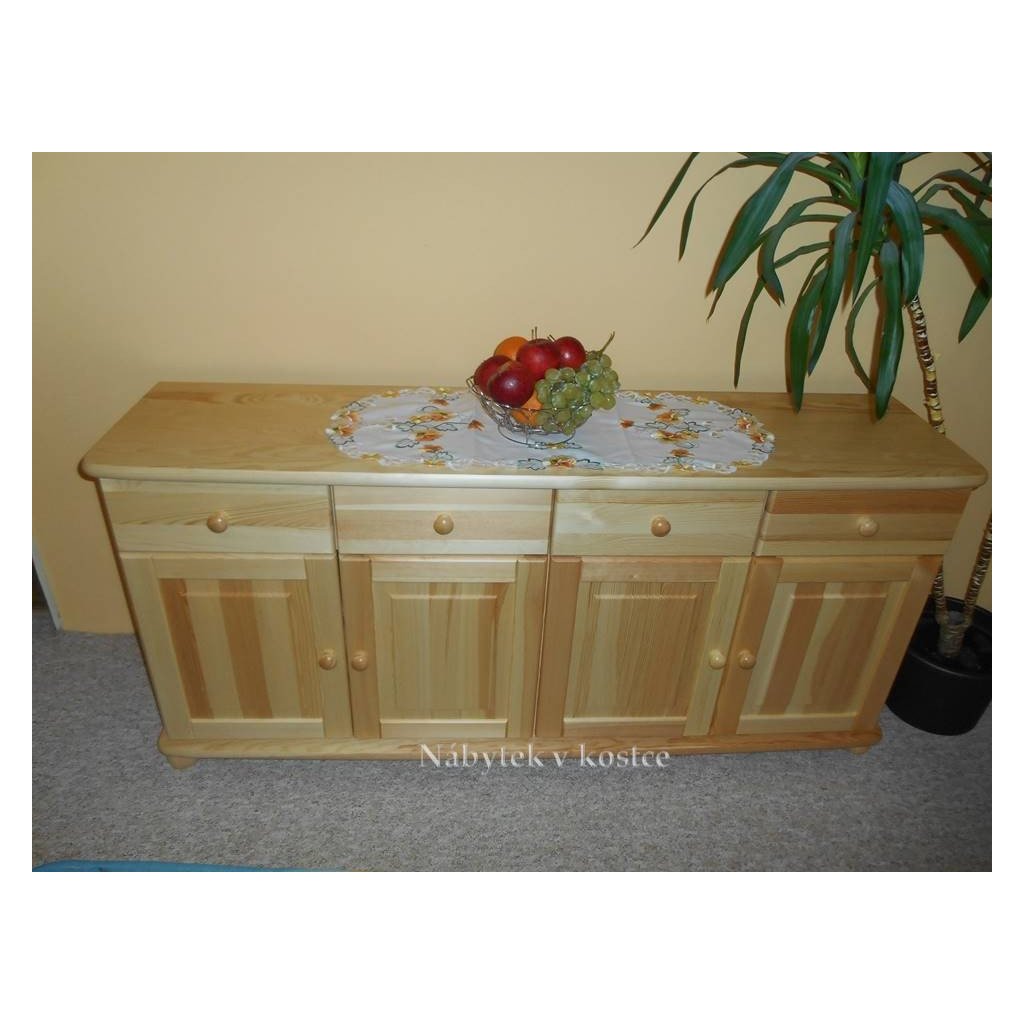 Komoda z masivu 27 Věrka je velmi velká a prostorná. Šuplíky v horní části jsou na kovových pojezdech. Komoda má oproti běžným komodám z masivu tloušťku horní i spodní desky 2 cm .