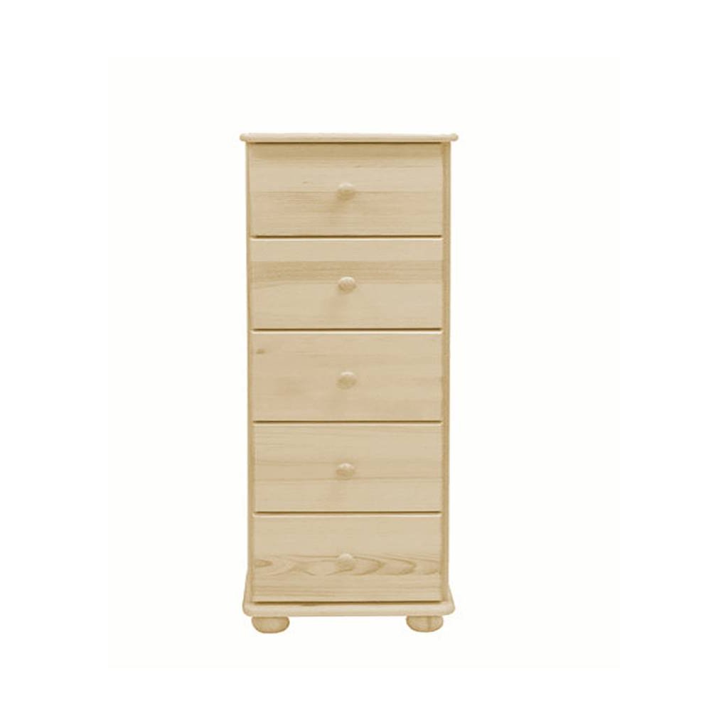 Komoda z masivu 43 Klára je vysoká a velmi praktická šuplíková komoda, lze ji použít i jako vysoký noční stolek. Šuplíky komody jsou na kovových pojezdech. Komodu Klára nabízíme taktéž ve vyžším provedení a to jako komodu Helenka. Komoda má oproti běžným komodám z masivu tloušťku horní i spodní desky 2 cm .