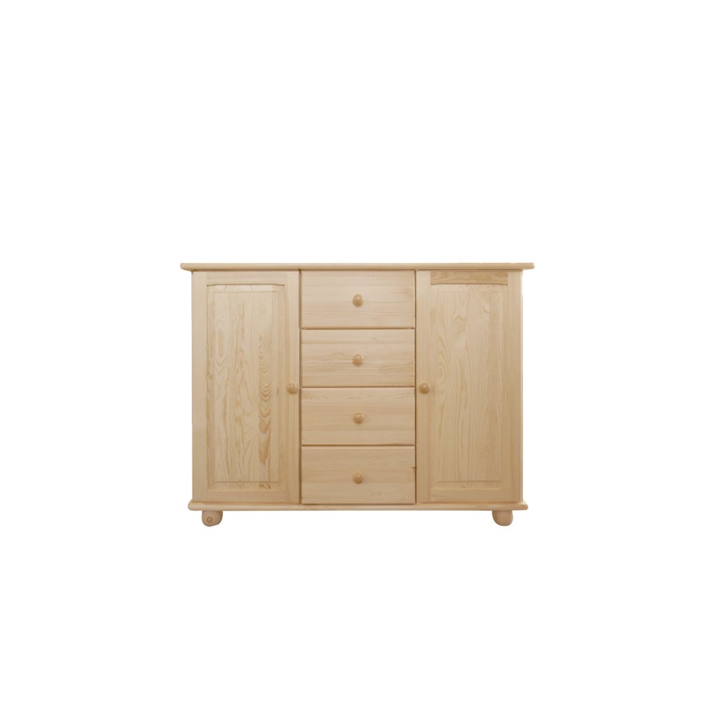 Komoda z masivu Šumava 36 je prostranná komoda vyrobená z borovicového masivu a ošetřená ekologickým bezbarvým lakem, který ji kvalitně ochrání před mechanickým poškozením a uschová komodě stávající přirozenou krásu. Tato kombinovaná komoda má k dispozici čtyři velké šuplíky a skříňky, jejíž dvířka zdobí okrasné frézování, které komodě dodají náznak venkovského stylu. Zadní stranu tvoří sololit, což je dřevovláknitá deska, vyrobená na bázi dřeva. Celkový dojem z komody dotvářejí kulaté úchyty, které komodě vdechnou nádech elegance.