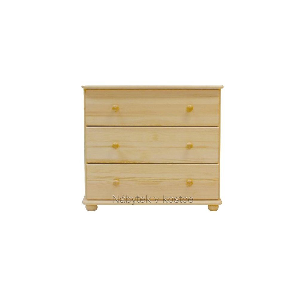 Komoda z masivu Šumava 13 š.100 je praktická komoda se čtyřmi šuplíky pro všestranné využití. Komoda je vyrobená z jakostního borovicového masivního dřeva. Skládá se ze tří objemných zásuvek s kvalitními kovovými pojezdy, které zajistí pohodlné vysouvání. Čela těchto zásuvek jsou opatřeny kulatými dřevěnými úchyty. Zadní stranu tvoří sololit, což je dřevovláknitá deska, vyrobená na bázi dřeva. Stabilitu komody zajišťují čtyři kulaté nohy ze dřeva. Komoda je natřena bezbarvým lakem, který pomáhá zamezit vzniku případných oděrek a zároveň pomůže zachovat stálou krásu přírodního vzhledu. Všechny materiály, z kterých je komoda zhotovena splňují přísná evropská kritéria pro zdravotní a ekologickou nezávadnost.