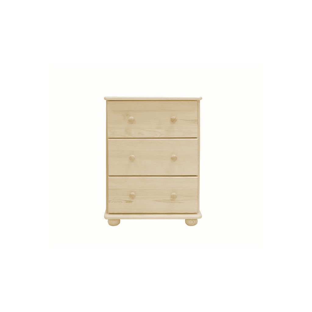 Komoda z masivu Šumava 14 je praktická komoda se třemi šuplíky pro všestranné využití. Komoda je vyrobená z jakostního borovicového masivního dřeva. Skládá se ze tří zásuvek s kvalitními kovovými pojezdy, které zajistí pohodlné vysouvání. Čela těchto zásuvek jsou opatřeny kulatými dřevěnými úchyty. Zadní stranu tvoří sololit, což je dřevovláknitá deska, vyrobená na bázi dřeva. Stabilitu komody zajišťují čtyři kulaté nohy ze dřeva. Komoda je natřena bezbarvým lakem, který pomáhá zamezit vzniku případných oděrek a zároveň pomůže zachovat stálou krásu přírodního vzhledu. Všechny materiály, z kterých je komoda zhotovena splňují přísná evropská kritéria pro zdravotní a ekologickou nezávadnost.