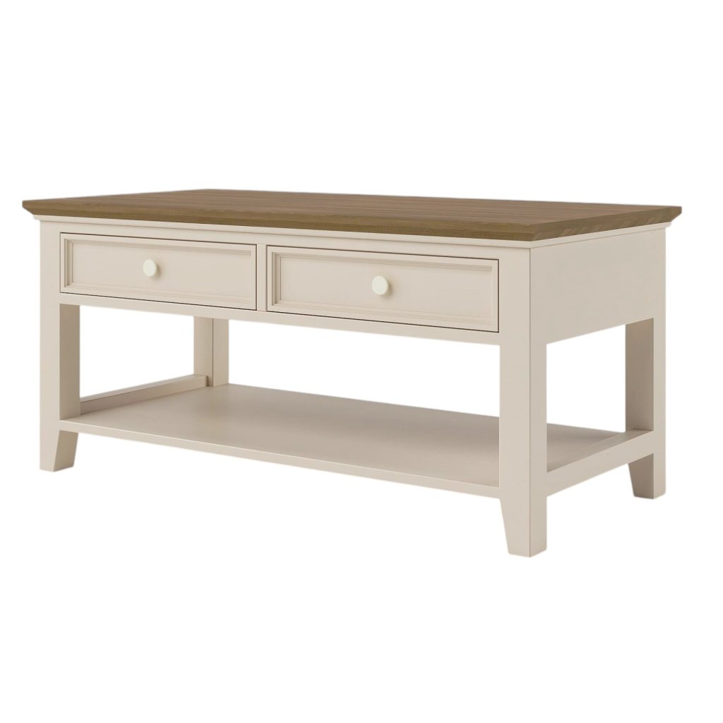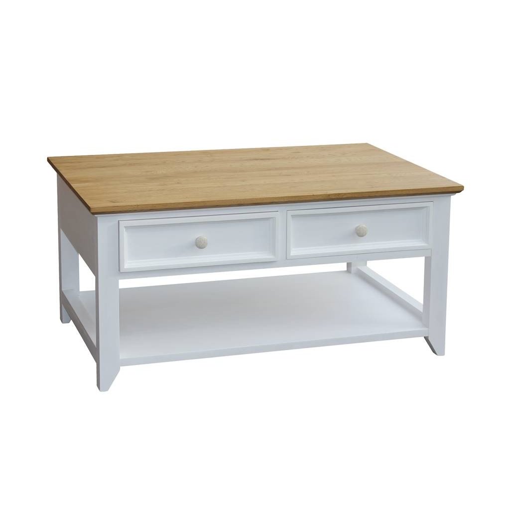 Masivní konferenční stolek PROVENCE je stolek vyrobený z masivního bukového dřeva, které je ošetřeno akrylovou barvou v krémovém odstínu, a z masivního dubového dřeva (horní deska), které je ošetřeno lakem. Díky spojení těchto dvou druhů masivního dřeva získal masivní stolek jedinečný vzhled, který zdokonalí veškerý interiér.