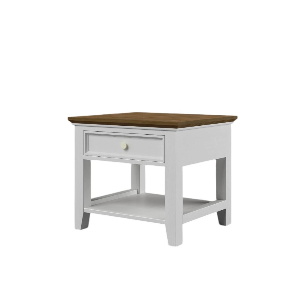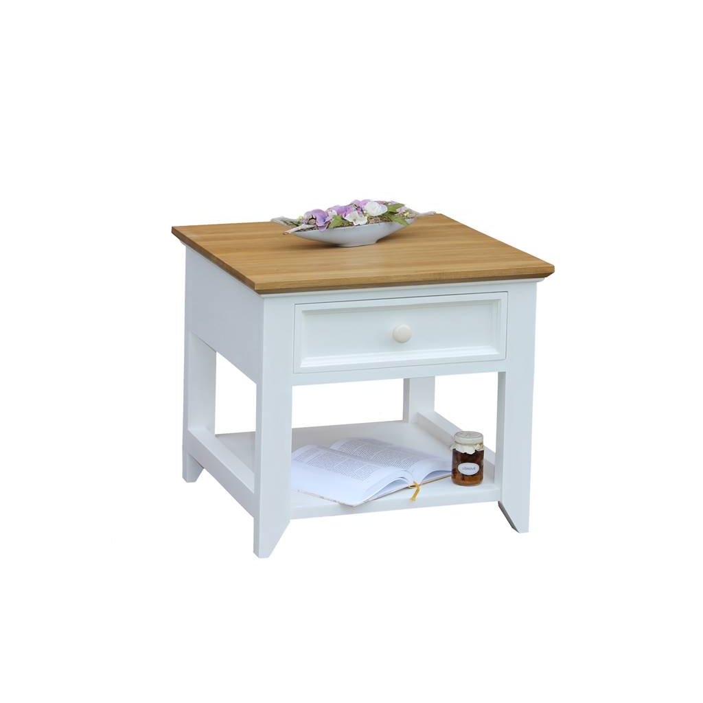 Konferenční stolek z masivu PROVENCE je spojením bukový a dubového dřeva. Dubové dřevo (horní deska) je ošetřeno olejem a bukové dřevo je ošetřeno akrylovou barvou v bílé barvě. Šuplík je bez pojezdu. Možnost objednání se systémem tichého dovírání (u šuplíků) - cena na dotaz.