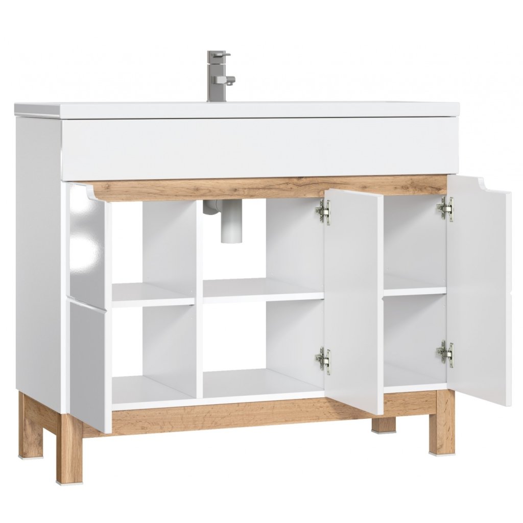 Umyvadlo není součástí skříňky, můžete si jej však dokoupit. K prezentované skříňce doporučujeme například Zápustné umyvadlo Sky 100 cm nebo Zápustné umyvadlo Spirit 100 cm.
