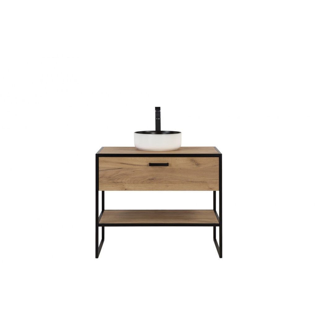 Kostra nabízené skříňky pod umyvadlo je vyrobena z kovu matné černé barvy. Korpus skříňky je vyroben z kvalitního lamina barvy dub craft zlatý, který působí příjemným hřejivým dojmem. Černé zbarvení kovu s laminem krásně kontrastuje, čímž vzniká zajímavý a svěží design modelu, který napomáhá vytvoření útulné atmosféry ve vaší koupelně.