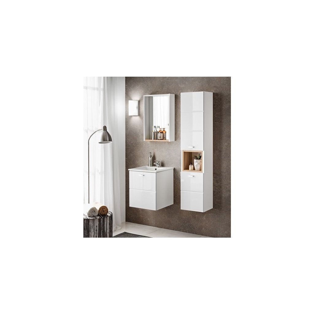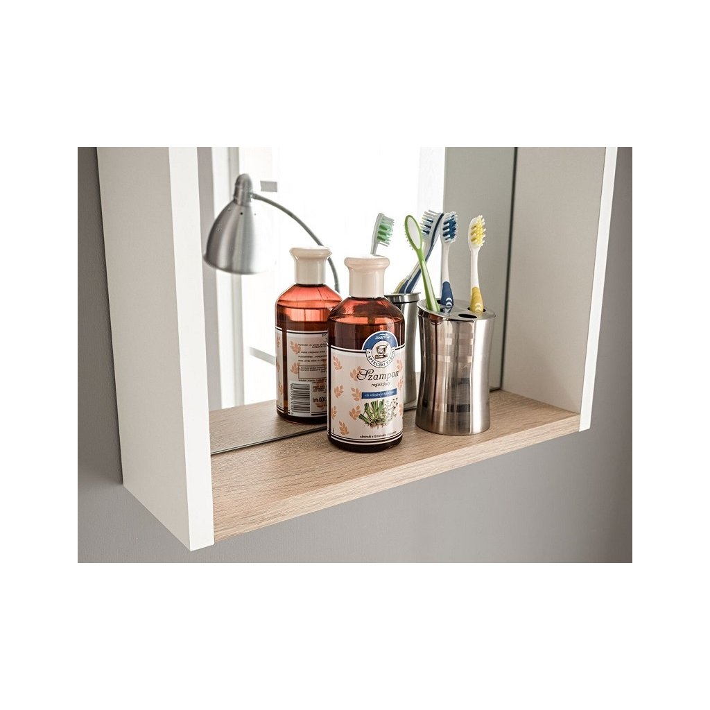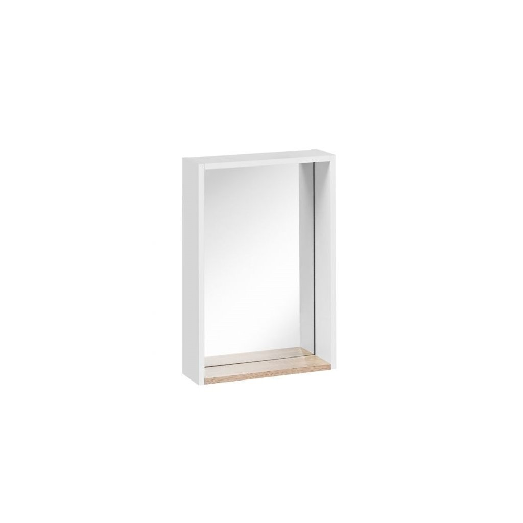 Prezentované zrcadlo FINKA má rám vyrobený z kvalitního lamina v lesklé bílé barvě, která působí vysoce moderně a svěže. Spodní deska, taktéž vyrobená z lamina, je v barvě sonoma, které příjemně kontrastuje s bílým zbarvením rámu, čímž vzniká estetický efekt, který v koupelně povzbudí útulnou atmosféru.