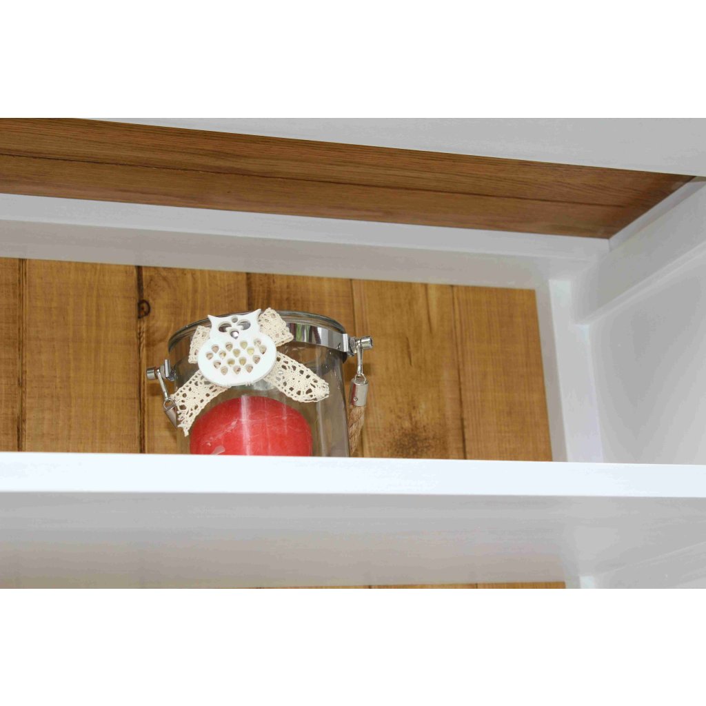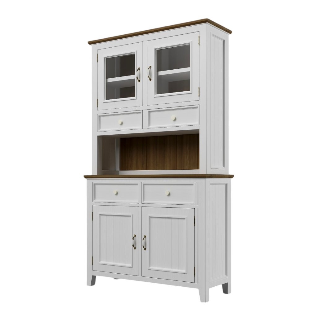 Provensálská kredenc PROVENCE je spojením bukového a dubového dřeva. Dubové dřevo (horní deska) je ošetřeno lakem a bukové dřevo je ošetřeno akrylovou barvou v bílé barvě. Šuplíky jsou bez pojezdů. Možnost objednání se systémem tichého dovírání (u šuplíků).