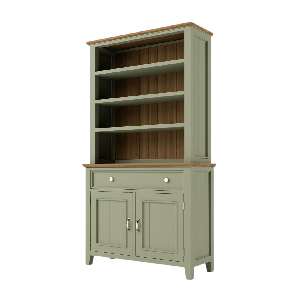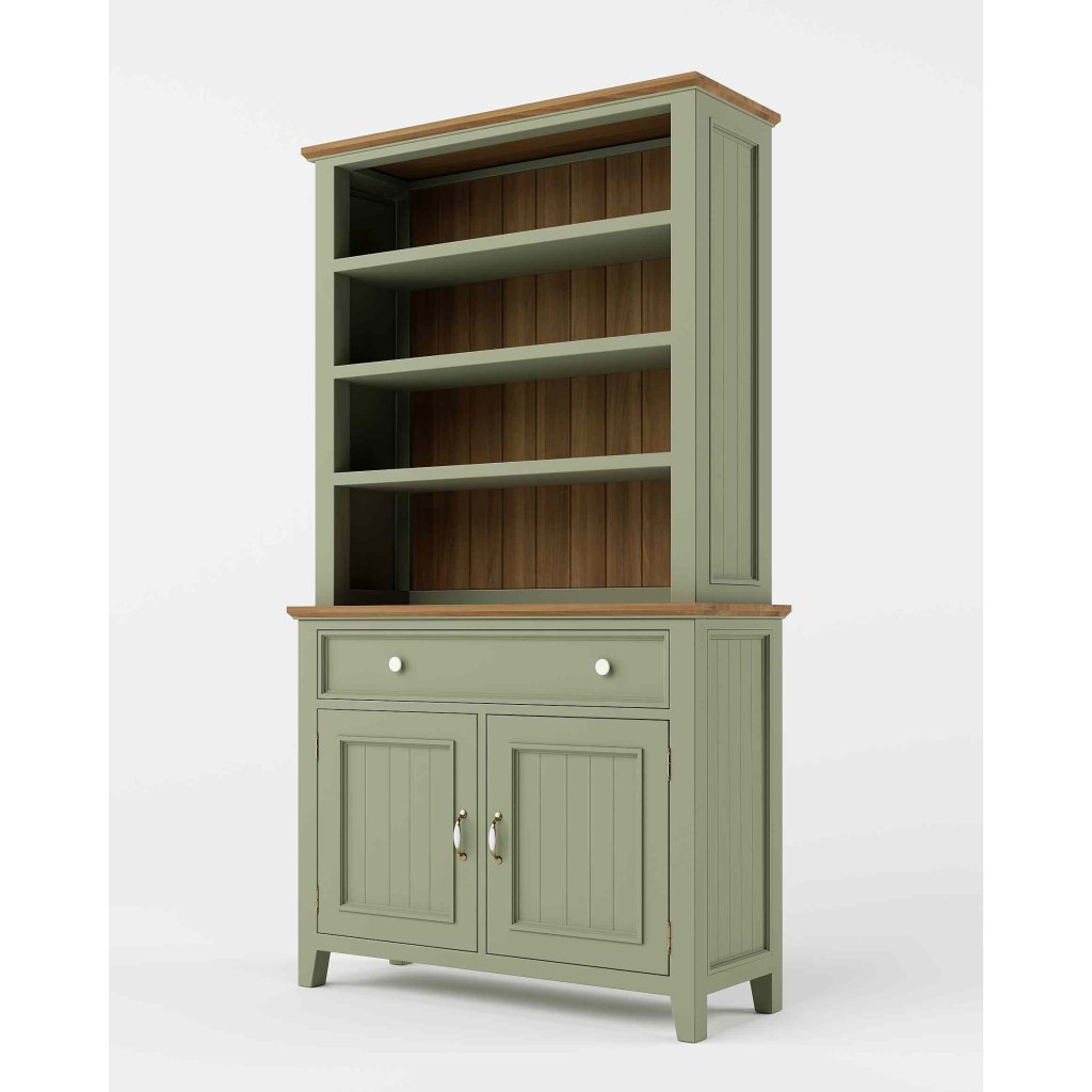 Masivní kredenc PROVENCE je kredenc vyrobená z masivního bukového dřeva, které je ošetřeno akrylovou barvou v olivovém odstínu, a z masivního dubového dřeva (horní deska), které je ošetřeno lakem. Díky spojení těchto dvou druhů masivního dřeva získala masivní kredenc jedinečný vzhled, který zdokonalí veškerý interiér.