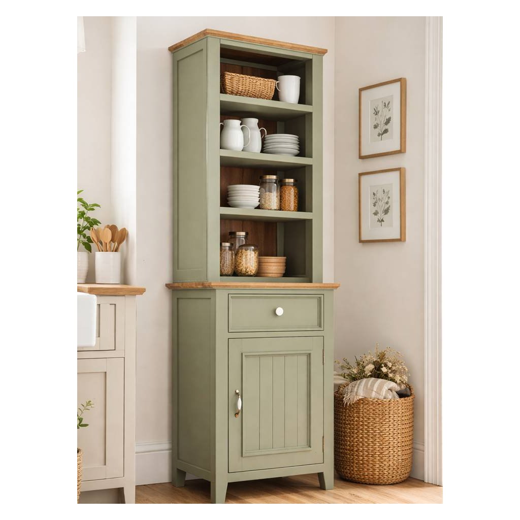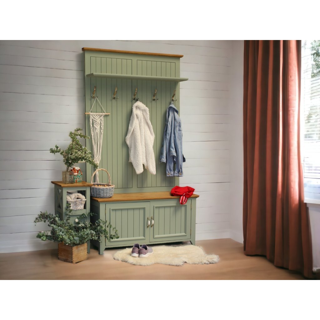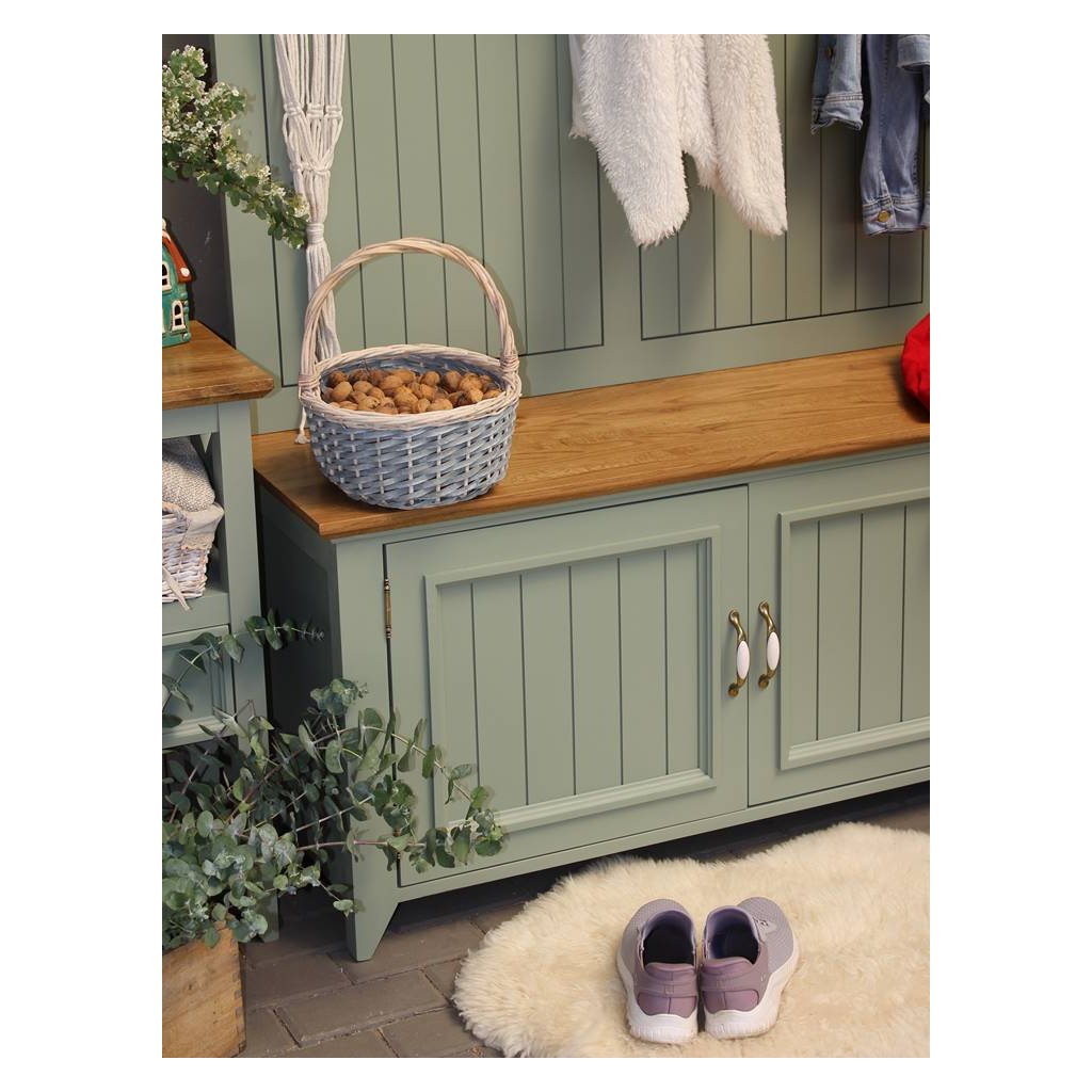Masivní kredenc PROVENCE je kredenc vyrobená z masivního bukového dřeva, které je ošetřeno akrylovou barvou v olivovém odstínu, a z masivního dubového dřeva (horní deska), které je ošetřeno lakem. Díky spojení těchto dvou druhů masivního dřeva získala masivní kredenc jedinečný vzhled, který zdokonalí veškerý interiér.