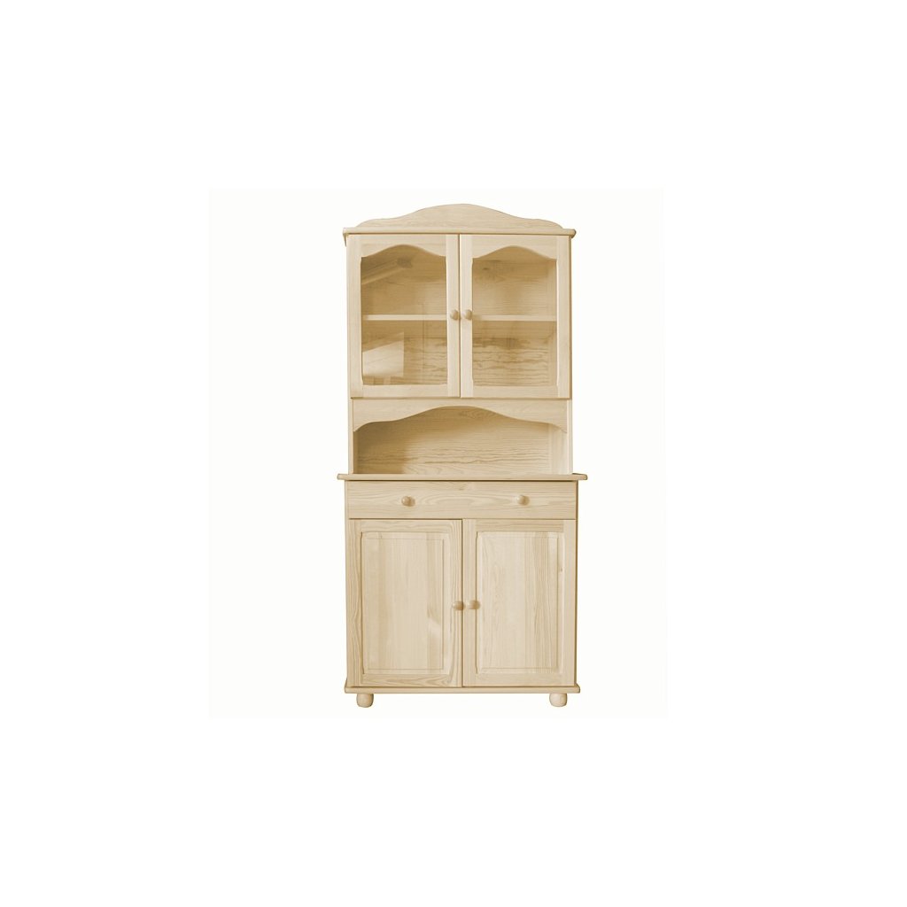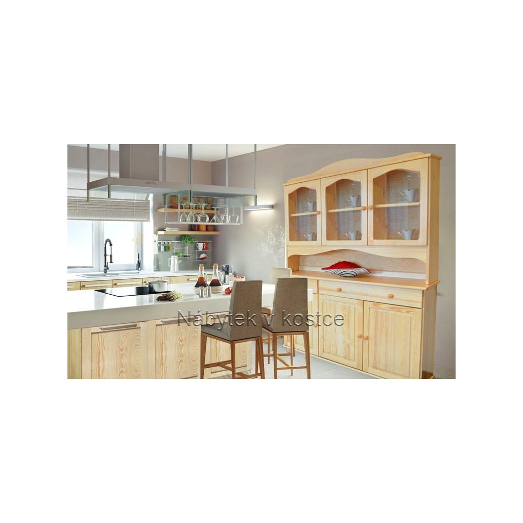 Kredenc z borovice 29 nabízí prostor na uložení nejen kuchyňských nezbytností. Horní část kredence tvoří dvoje prosklené dvířka. Dolní část nabízí dřevěnou skříňku s policí, nad níž je objemný šuplík.