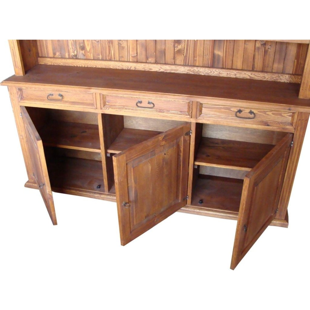 Rustikální kredenc MEXICANA je celomasivní příborník či skříň do jídelny i kuchyně, vyrobený z borovicového masivního dřeva ošetřen voskem, dle výběru (vosk světle hnědý-medový, ořech, kaštan, dub tmavý, dub kouřový anebo vosk bezbarvý). Ze dřeva jsou rovněž vyrobeny i pojezdy na šuplíky a police. Vosk je ručně nanášený štětcem. Za příplatek je možno nechat nábytek ošetřit lakem.