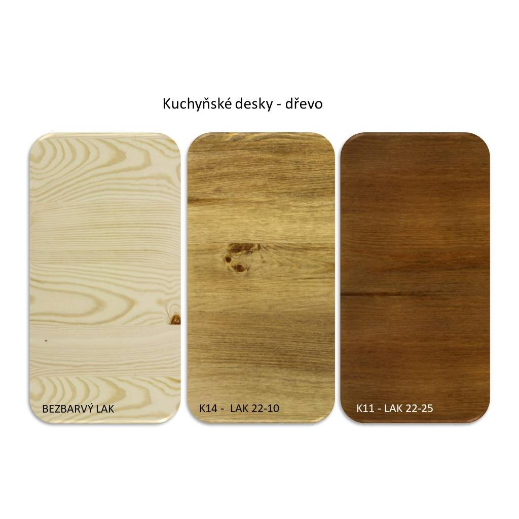 Dřevěná pracovní deska je dostupná v různých odstínech, stejně jako laminátová pracovní deska. Dřevěnou kuchyňskou sestavu můžete doplnit o jídelní nábytek WHITE HOME nebo o jídelní nábytek CORDOBA, který je ze stejné kolekce.