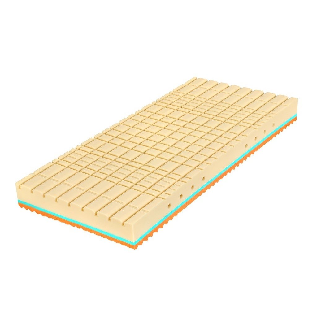 Strana z modré pěny Flexifoam® dosahující vlastností studené pěny má 7 zón se speciální profilací CubeCare ve tvaru kostek. Pomáhá zabránit pocitu přeležení – každá kostka reaguje samostatně.