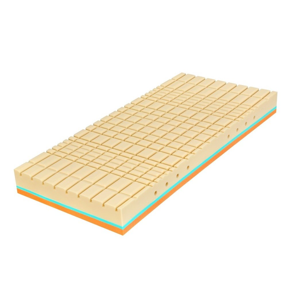 Strana z modré pěny Flexifoam® dosahující vlastností studené pěny má 7 zón se speciální profilací CubeCare ve tvaru kostek. Pomáhá zabránit pocitu přeležení – každá kostka reaguje samostatně.