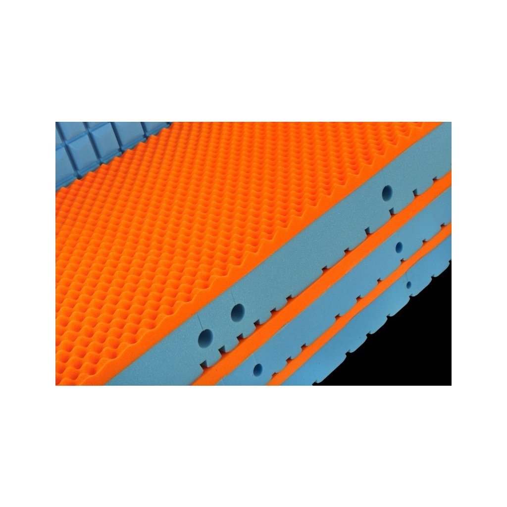 Druhá strana každé matrace Fox je vyrobena z houževnaté pěny Flexifoam® vyšší objemové hmotnosti (modrá; přirozená tuhost + odolnost + skvělý komfort).