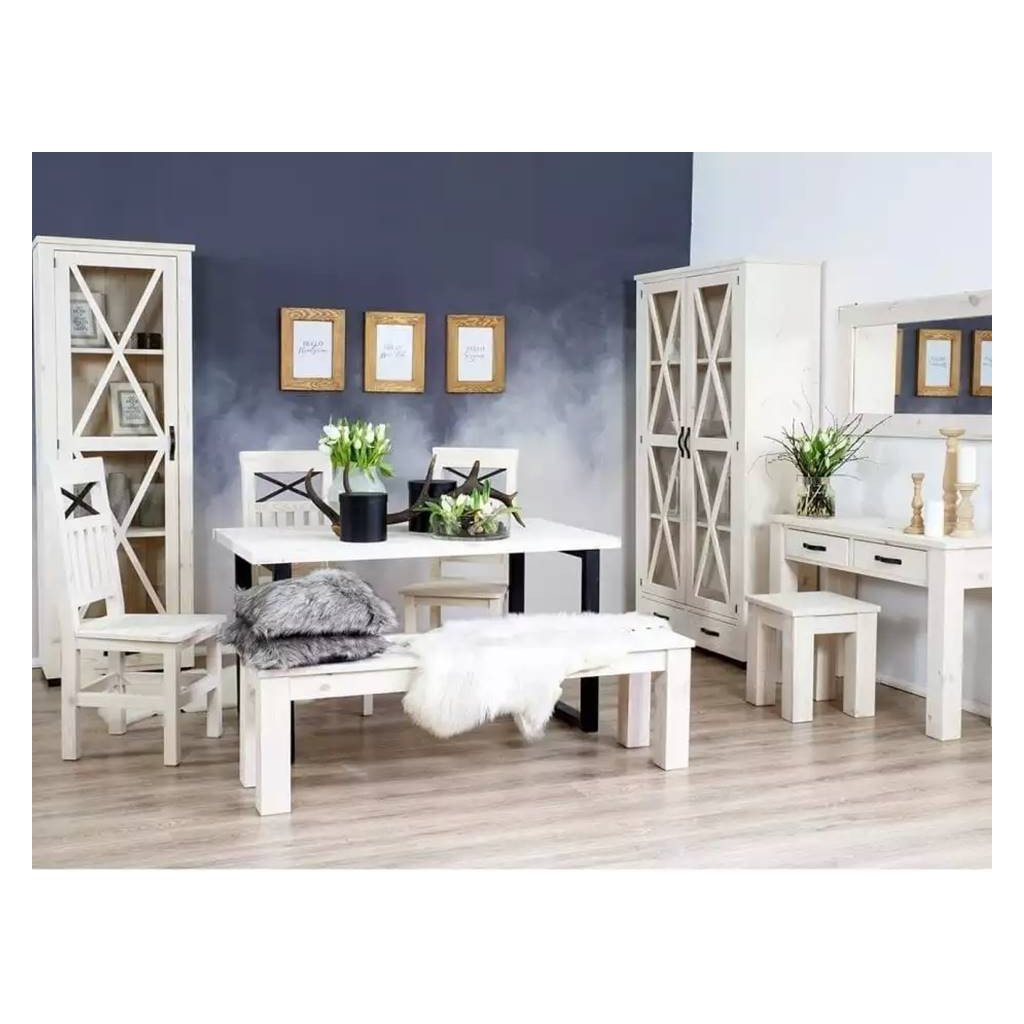 Kolekce METAL je ojedinělým a velice osobitým nábytkem z masivního borovicového dřeva, které je profesionálně vysušené a bez kazů. Je ošetřeno přírodním voskem, takže nepředstavuje žádná zdravotní rizika pro nás nebo naše okolí. Efektivní vzhled nábytku dotváří kovové doplňky, úchyty a panty.