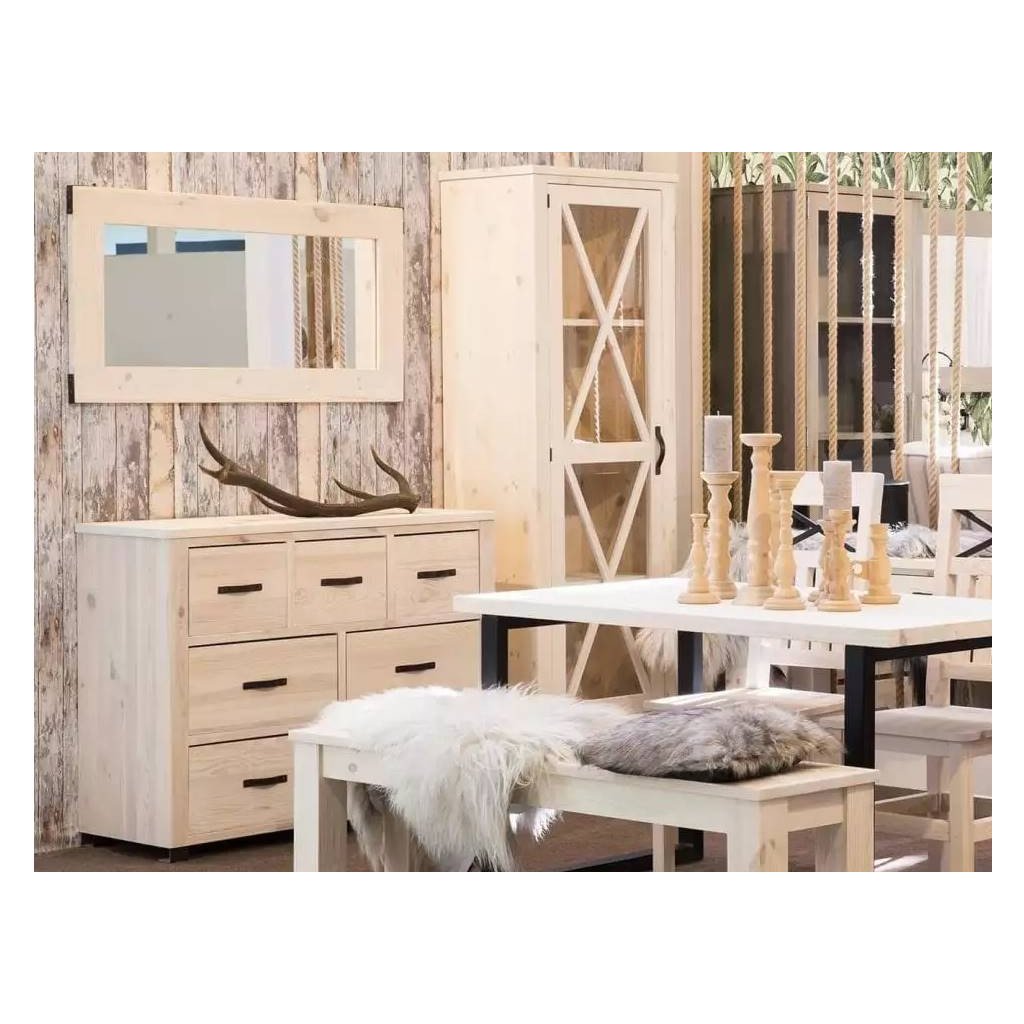 Kolekce METAL je ojedinělým a velice osobitým nábytkem z masivního borovicového dřeva, které je profesionálně vysušené a bez kazů. Je ošetřeno přírodním voskem, takže nepředstavuje žádná zdravotní rizika pro nás nebo naše okolí. Efektivní vzhled nábytku dotváří kovové doplňky, úchyty a panty.