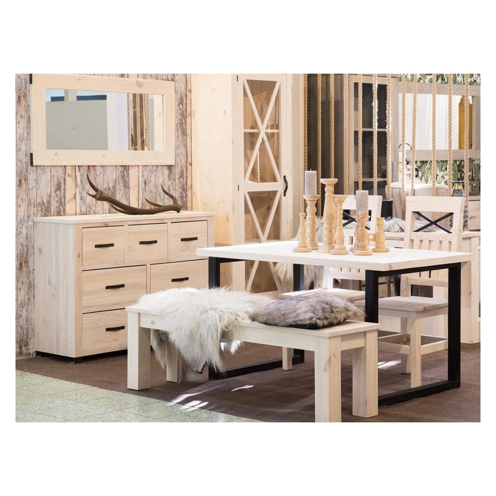 Nábytek METAL je kombinací jakostního borovicového masivu s ocelovými prvky. Tento jedinečný design sebou přináší nespornou originalitu a díky přírodnímu dřevu i klasickou krásu. Tento nábytek bude v každém interiéru opravdovým skvostem.