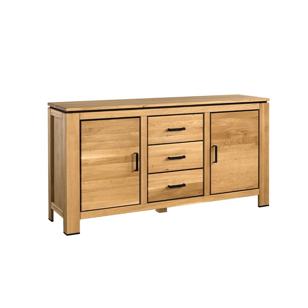 Dubová komoda malá Faro II Typ 48 je přesně ten kus nábytku, který umí udělat pořádek i dojem zároveň. Na první pohled zaujme masivním dubem — přirozeným, teplým a poctivým materiálem, který interiéru dodá klid a útulnost. A pak přijde druhý dojem: moderní kontrast v podobě černých úchytek, černých lišt a černých nožek. Tenhle detailní „černý podpis“ dělá z komody Faro II Typ 48 stylový solitér, který se hodí do moderních i klasických prostor, aniž by působil okoukaně.