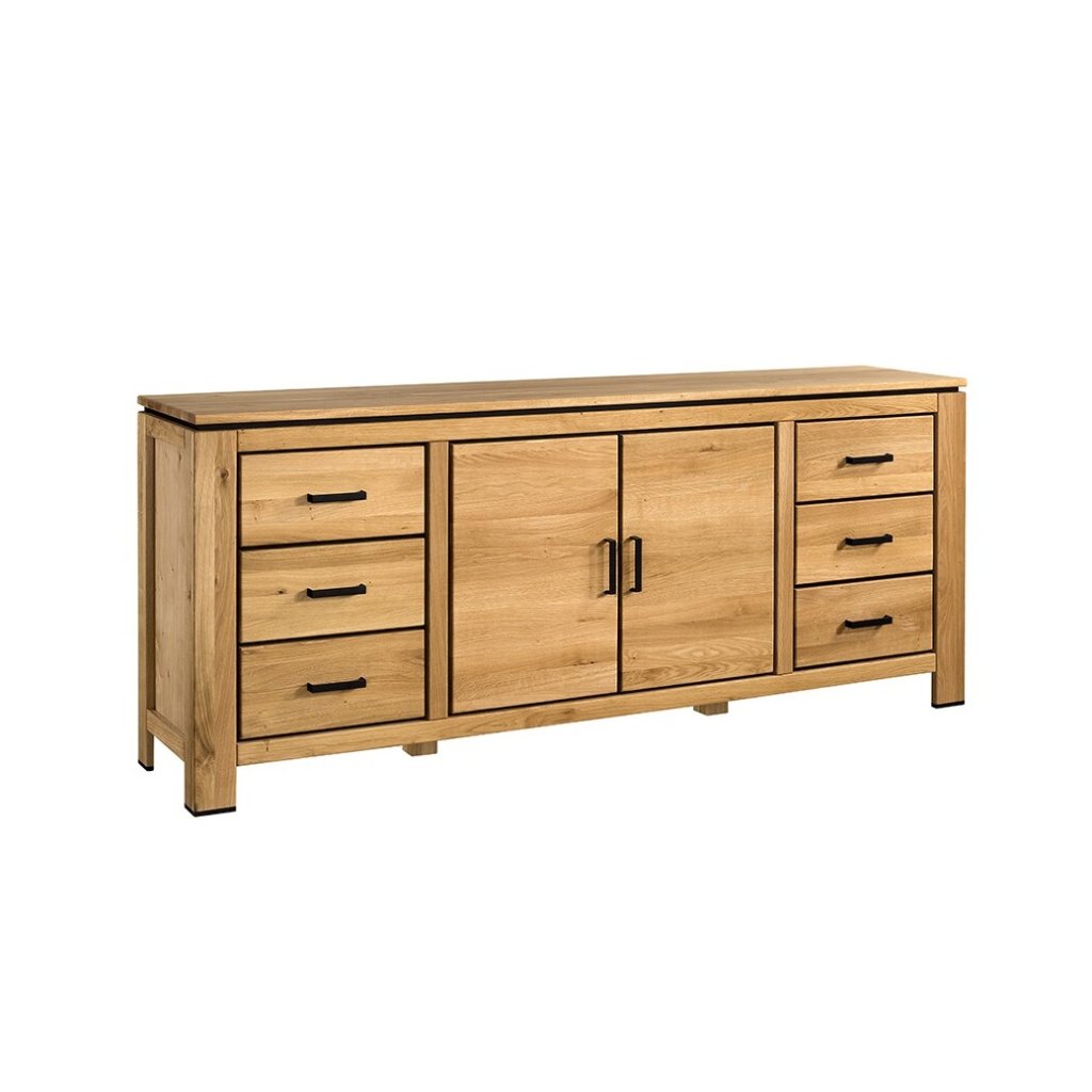 Velká dubová komoda Faro II Typ 49 je důkazem, že funkční nábytek může být zároveň výrazným designovým prvkem interiéru. Spojuje v sobě poctivou sílu přírodního dubového masivu s moderními kontrastními detaily v černém provedení. Výsledkem je komoda, která působí elegantně, stabilně a přirozeně sebevědomě.