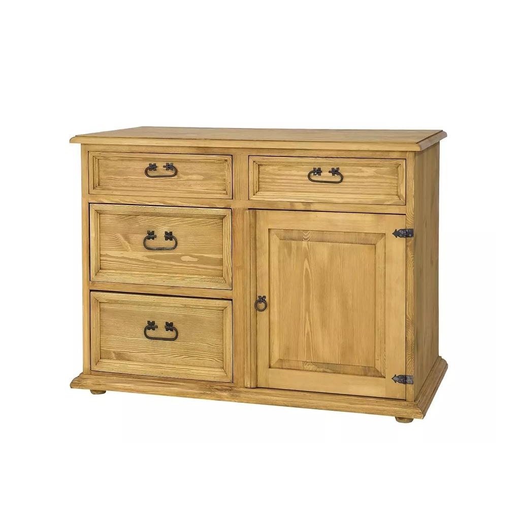 Komoda CORDOBA Slim je zhotovená z masivní borovice a může být ošetřena voskem v barvě dle výběru. Díky stylovému kování působí tento nábytek elegantním a nadčasovým dojmem.