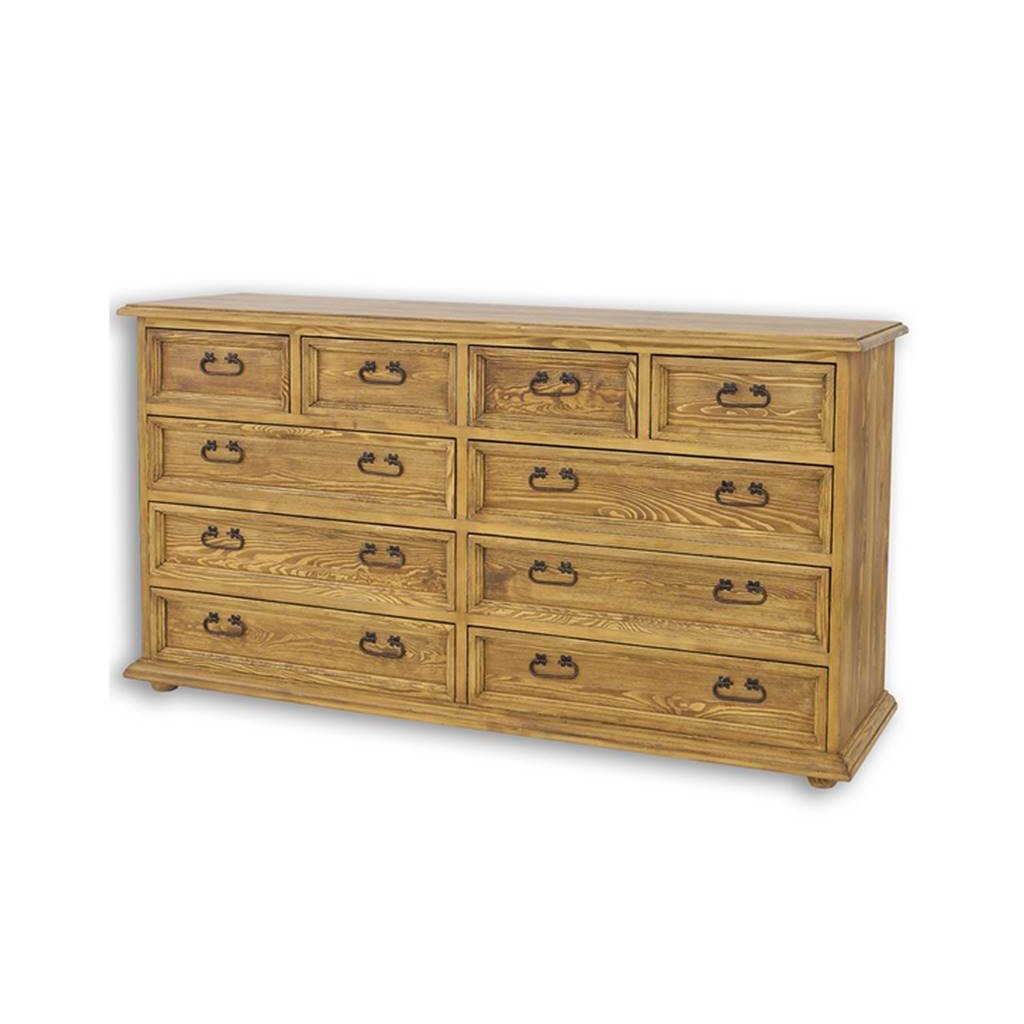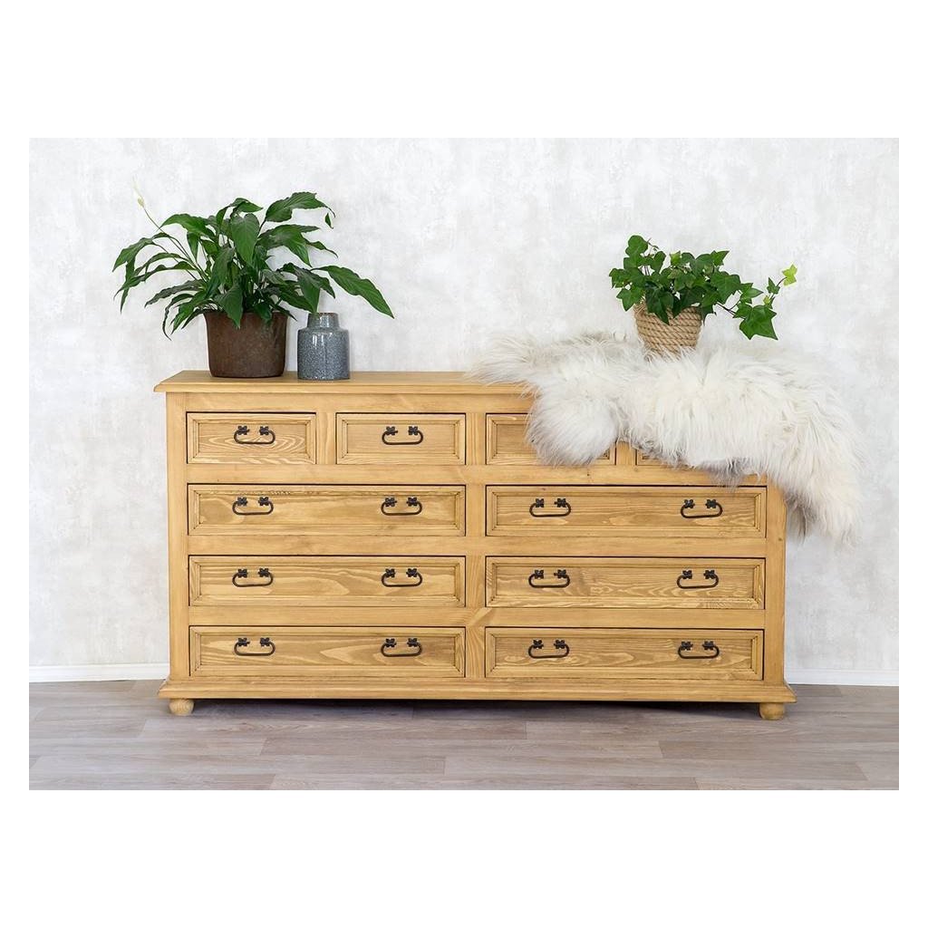 Komoda Cordoba Slim je zhotovená z masivní borovice a může být ošetřena voskem v barvě dle výběru. Díky stylovému kování působí tento nábytek elegantním a nadčasovým dojmem.