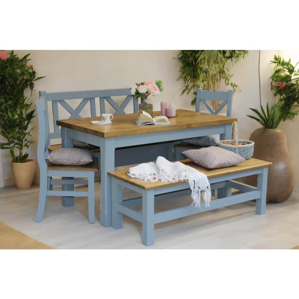 Masivní lavice PROVENCE je ideální doplňkem k jídelnímu stolu PROVENCE do kuchyně a jídelny, ale také samostatně do chodby či předsíně.