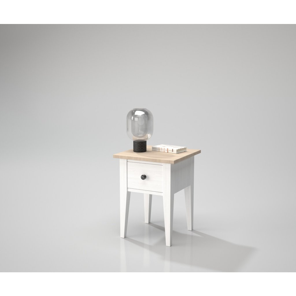 Bukový bílý noční stolek ROMA White ST2 je malý kus nábytku, který v ložnici udělá překvapivě velký pořádek – a ještě u toho vypadá skvěle. Je vyrobený z bukového masivu, takže působí pevně, stabilně a je připravený na každodenní provoz. Díky rozměrům 50 × 40 × 40 cm (výška × šířka × hloubka) se hodí i do menších prostor, ale horní deska stále pohodlně pojme lampičku, knížku i telefon.