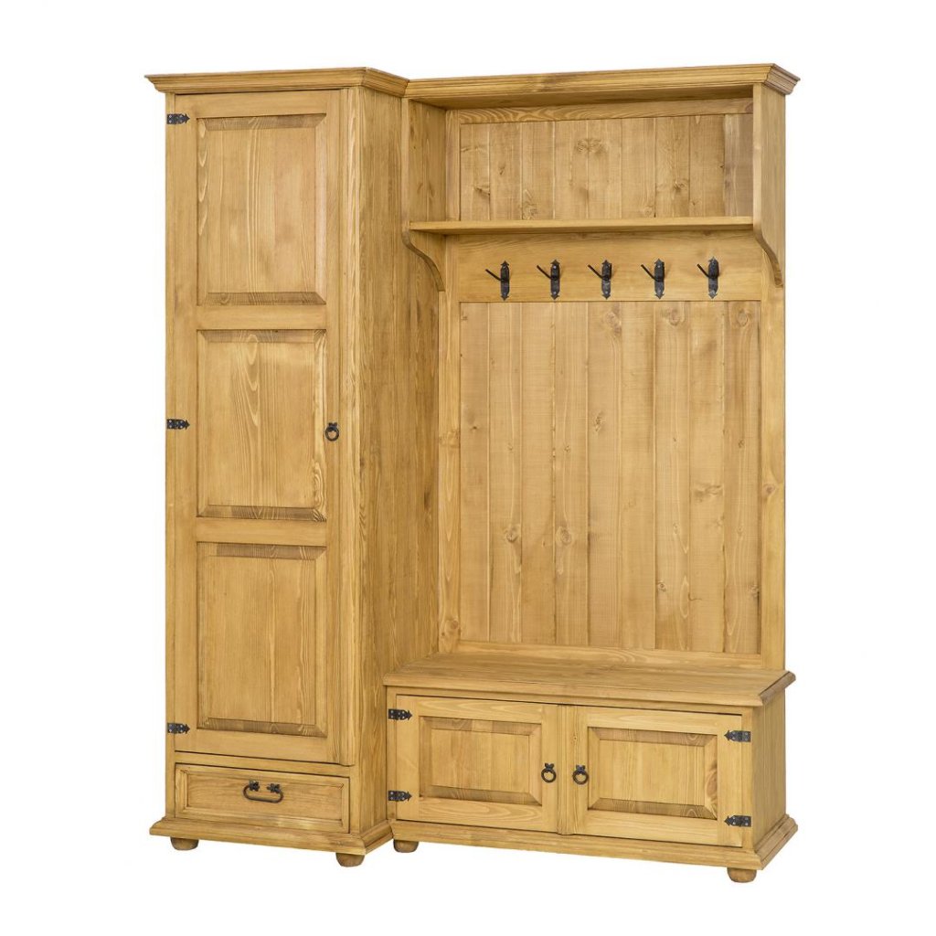 Masivní předsíň CORDOBA 04 je vyrobena z borovicového masivu vysoké kvality. Předsíň má v horní části na pravé straně polici, zatímco po levé straně je umístěna skříň. Ve spodní části pod policí jsou dvoje dvířka, za kterými se nachází botník. Předsíňová skříňka je opatřena stylovými kovovými úchyty a panty.