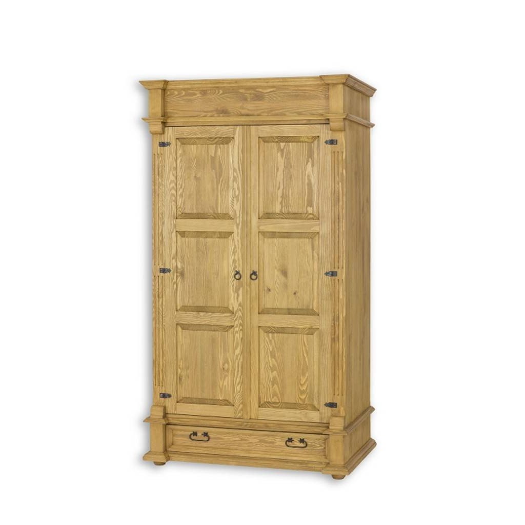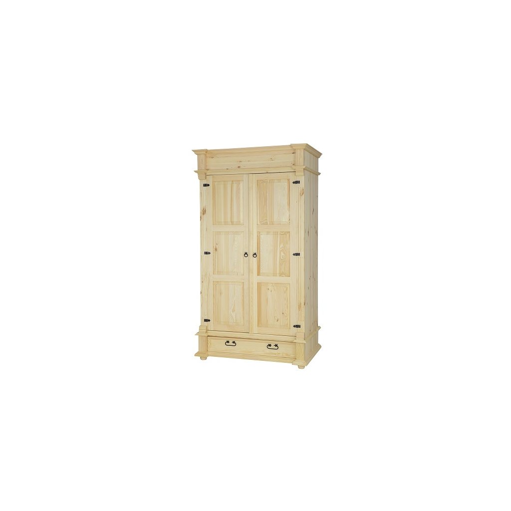 Masivní šatní skříň CORDOBA 04/C je vyrobena z borovicového masivu vysoké kvality. Záda skříně jsou rovněž vyrobeny ze dřeva. U této skříně si můžete zvolit ze 3 variant provedení. A/ s tyčí, za B/ s tyčí a policemi a za C/ s policemi. U každé varianty jsou dole 2 praktické šuplíky. Skříň je opatřena stylovými kovovými úchyty a panty.