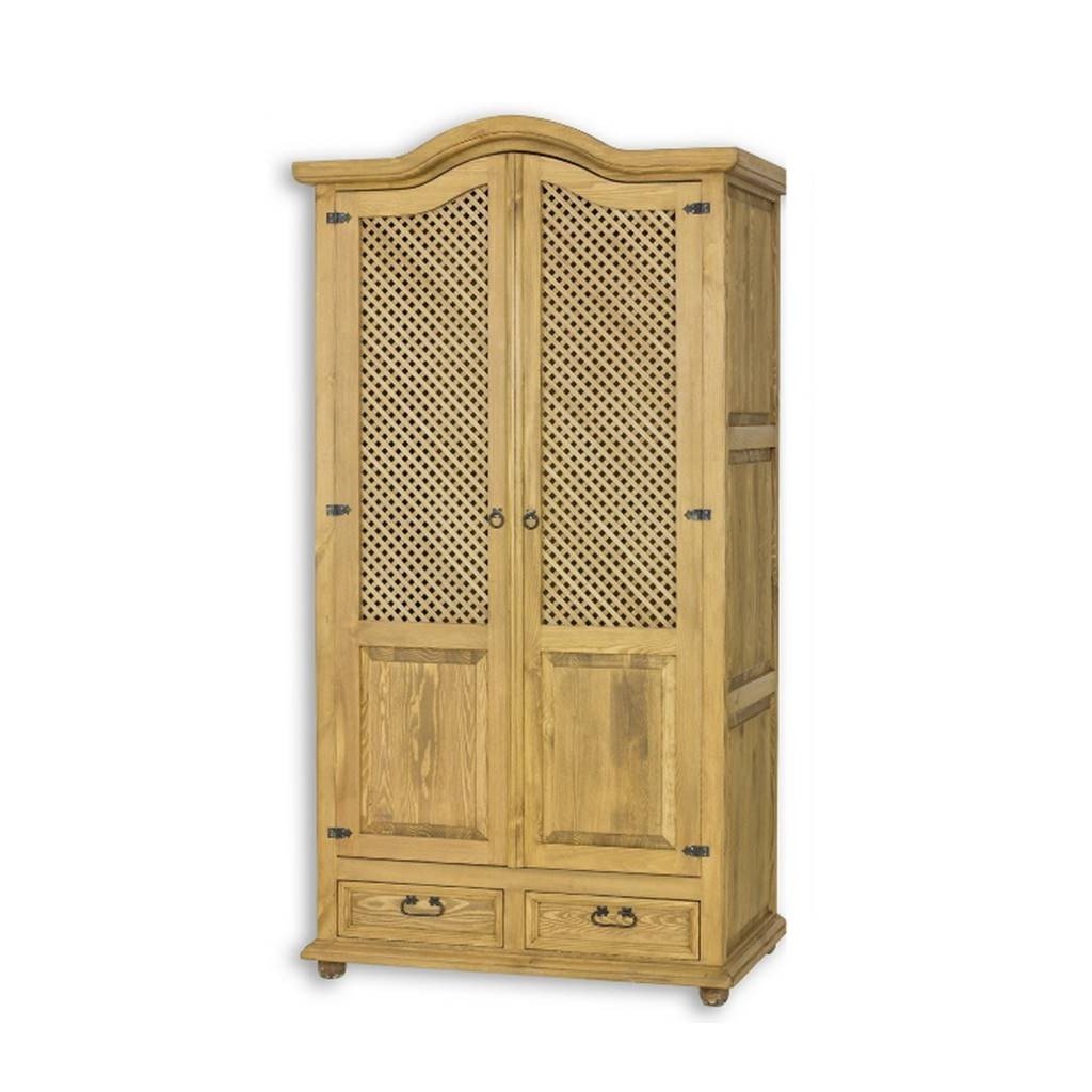 Masivní šatní skříň CORDOBA 06/A je vyrobena z borovicového masivu vysoké kvality. Záda skříně jsou rovněž vyrobeny ze dřeva. U této skříně si můžete zvolit ze 3 variant provedení. A/ s tyčí, za B/ s tyčí a policemi a za C/ s policemi. U každé varianty jsou dole 2 praktické šuplíky. Skříň je opatřena stylovými kovovými úchyty a panty.