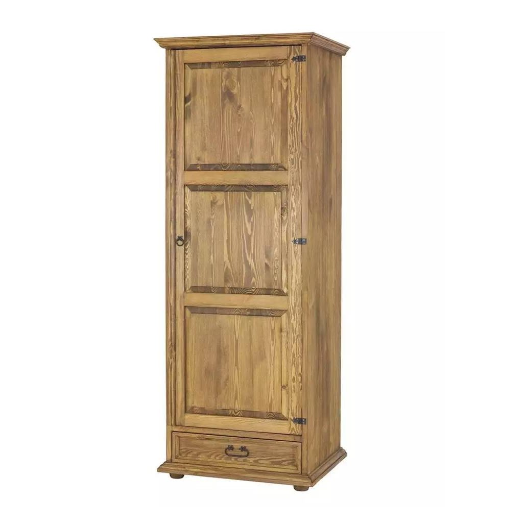 Šatní skříň CORDOBA Slim je zhotovená z masivní borovice a může být ošetřena voskem anebo ekologickým lakem, dle Vašeho výběru. Díky stylovému kování působí tento nábytek elegantním a nadčasovým dojmem. Záda skříně jsou vyrobeny rovněž ze dřeva.