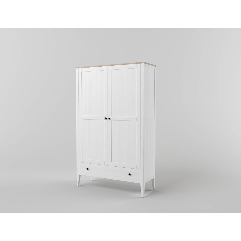 Nadčasový pořádek, žádné kompromisy. Bílá buková skříň ROMA White SST3PD je kombinovaná šatní skříň z bukového masivu pro ty, kteří chtějí kabáty a šaty na ramínku a zbytek pěkně srovnaný. Čistý bílý korpus projasní místnost, masiv dodá jistotu stability a 20 cm vysoké nohy odlehčí siluetu i každodenní úklid (robot projede, prach nemá šanci). Styl vyladíte do detailu: úchytky v černé, zlaté nebo bílé a volitelné LED osvětlení (lze dokoupit, cena na dotaz) pro příjemnou večerní atmosféru i rychlý přehled.