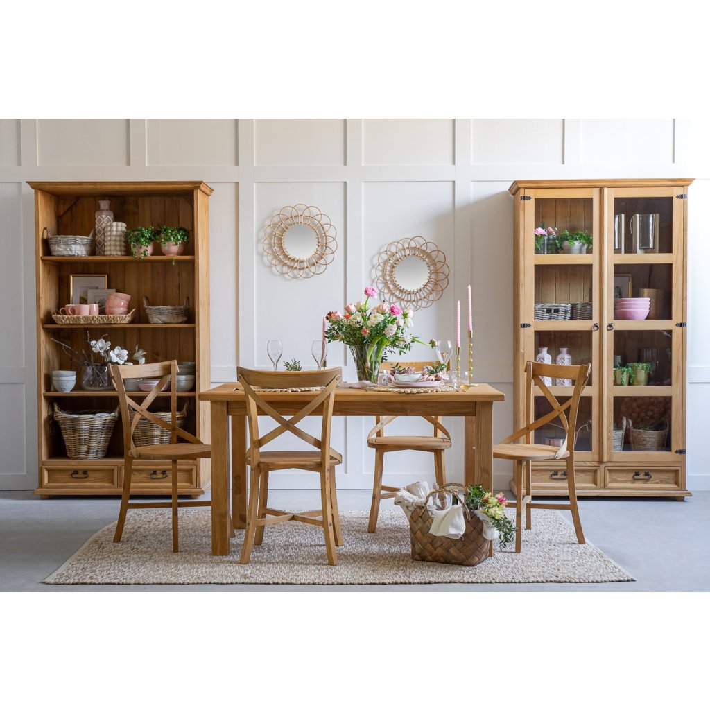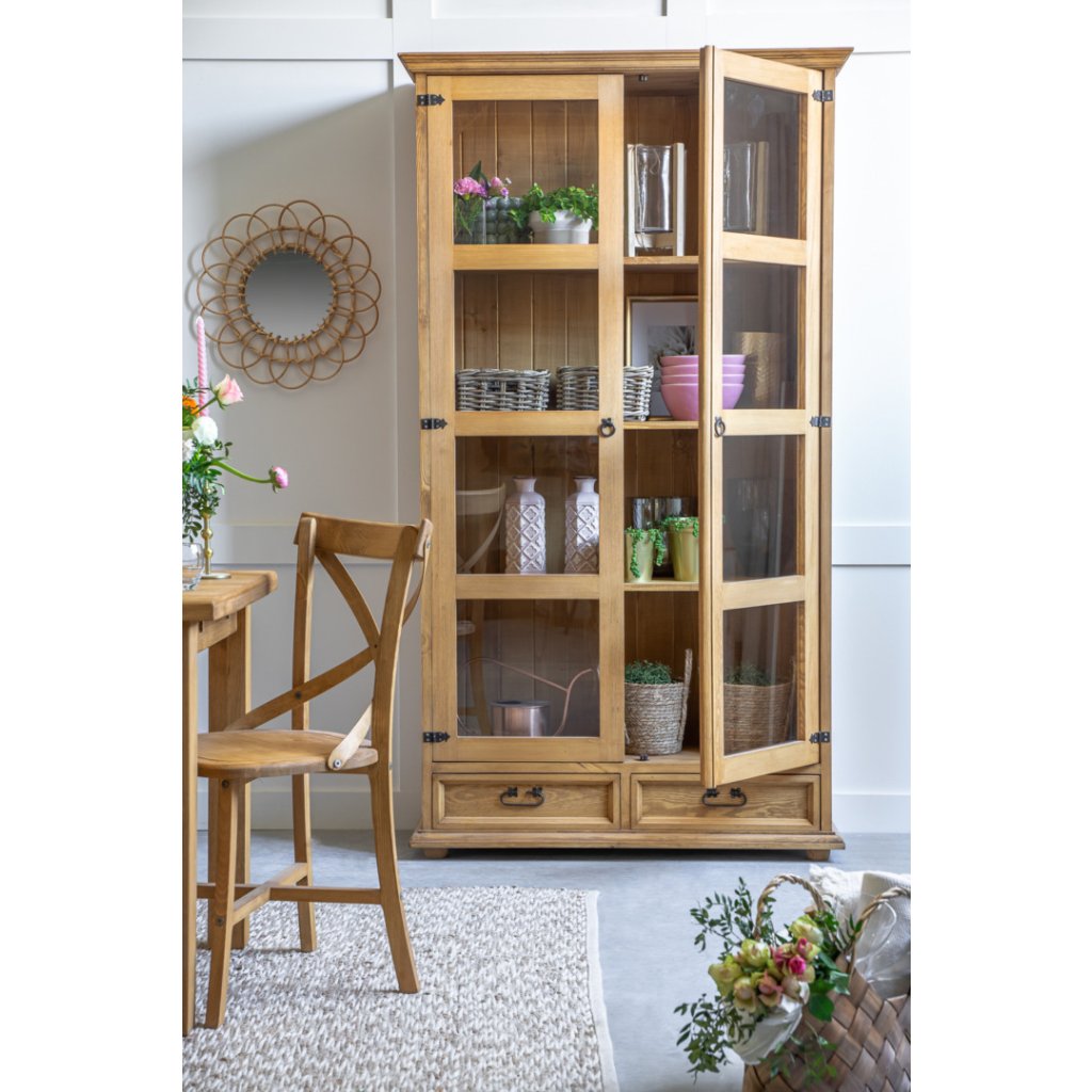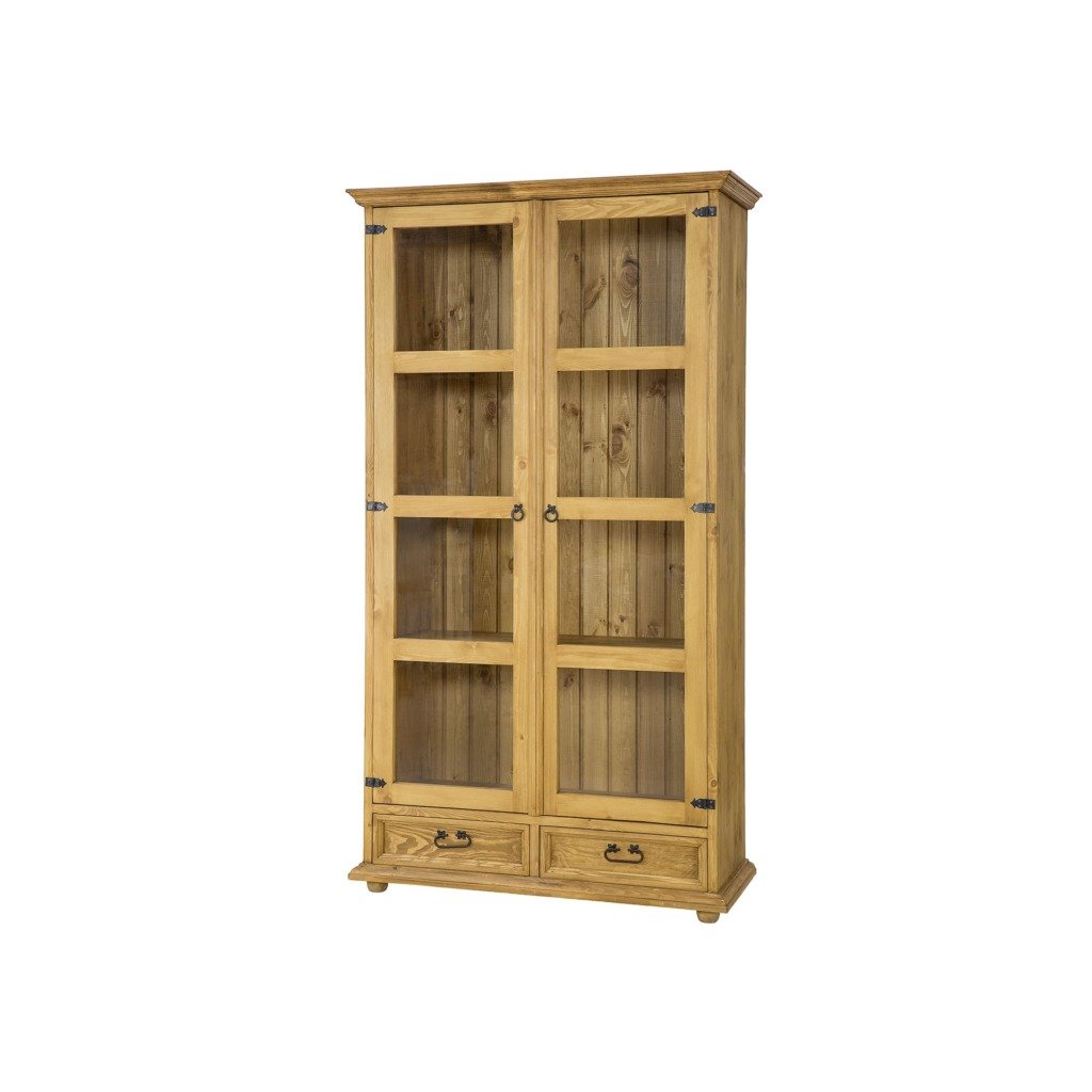 Vitrína CORDOBA Slim je zhotovená z masivní borovice a může být ošetřena voskem v barvě dle výběru. Ze dřeva jsou vyrobeny i záda vitríny. Díky stylovému kování působí tento nábytek elegantním a nadčasovým dojmem.