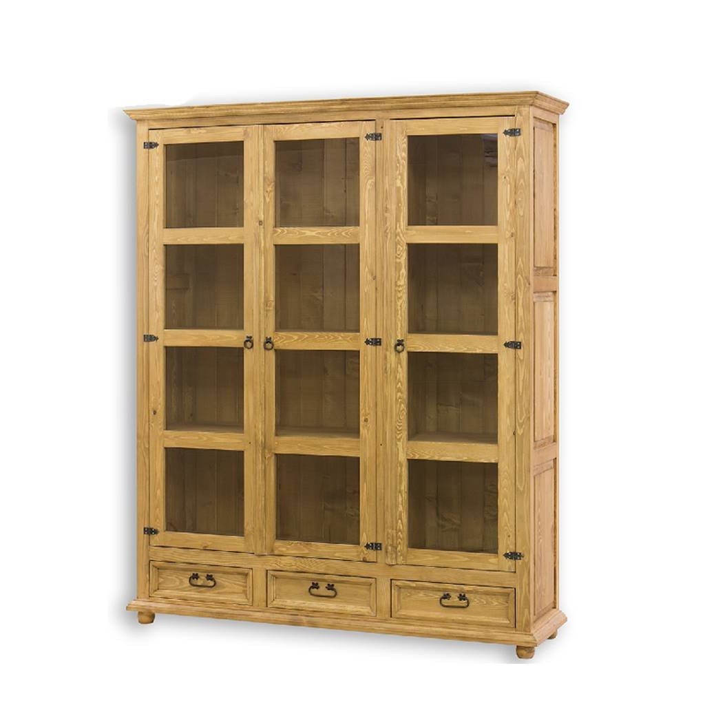 Masivní šatní skříň CORDOBA 08/1 je vyrobena z borovicového masivu vysoké kvality. Záda jsou rovněž vyrobeny ze dřeva. U této vitríny si můžete zvolit ze 2 variant provedení. Obě varianty jsou se skleněnými dveřmi a policemi, ale verze 1/ je dodávána v celku a verze 2/ je oddělená. U každé varianty jsou dole 3 praktické šuplíky. Vitrína je opatřena stylovými kovovými úchyty a panty. Nožky jsou kulaté.