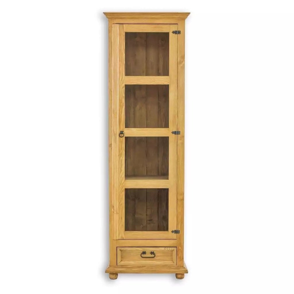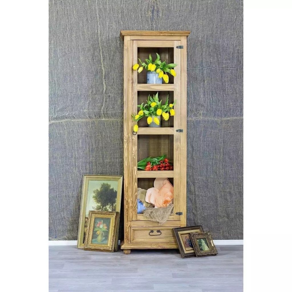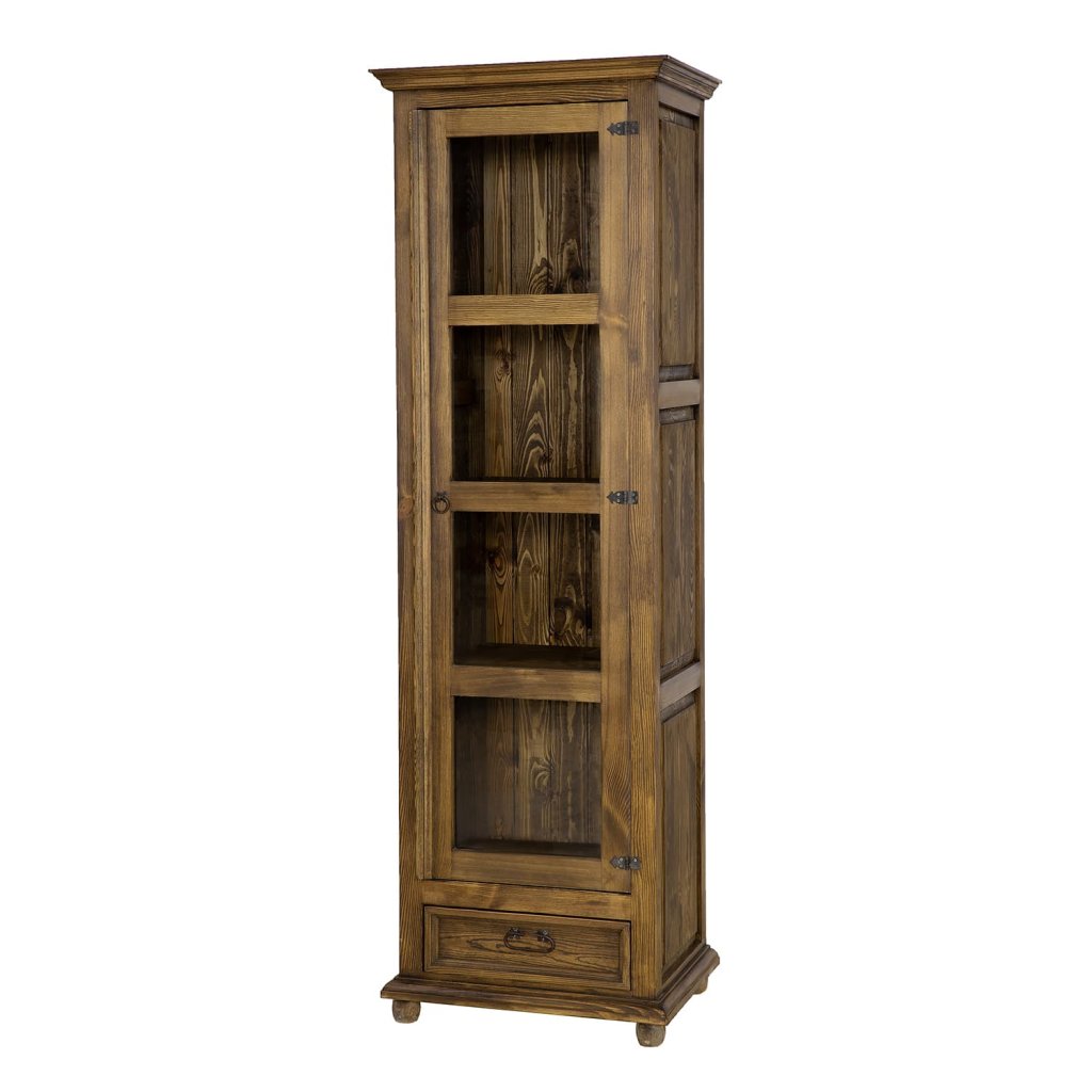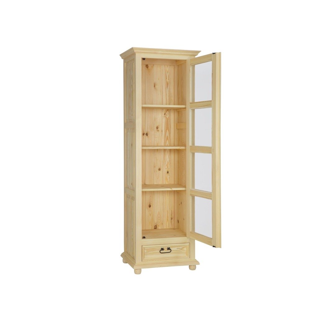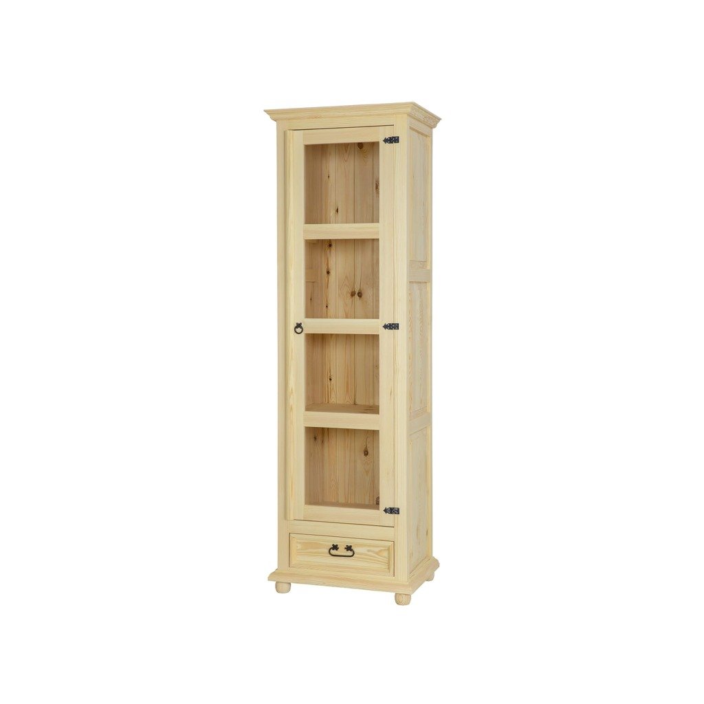 Masivní vitrína CORDOBA 16 je vyrobena z borovicového masivu vysoké kvality. Záda jsou rovněž vyrobeny ze dřeva. Vitrína má 1 skleněné dveře. Uvnitř vitríny jsou 3 dřevěné police a celá vitrína stojí na kulatých nožkách. Dole je 1 praktický šuplík. Skříň je opatřena stylovými kovovými úchyty a panty.