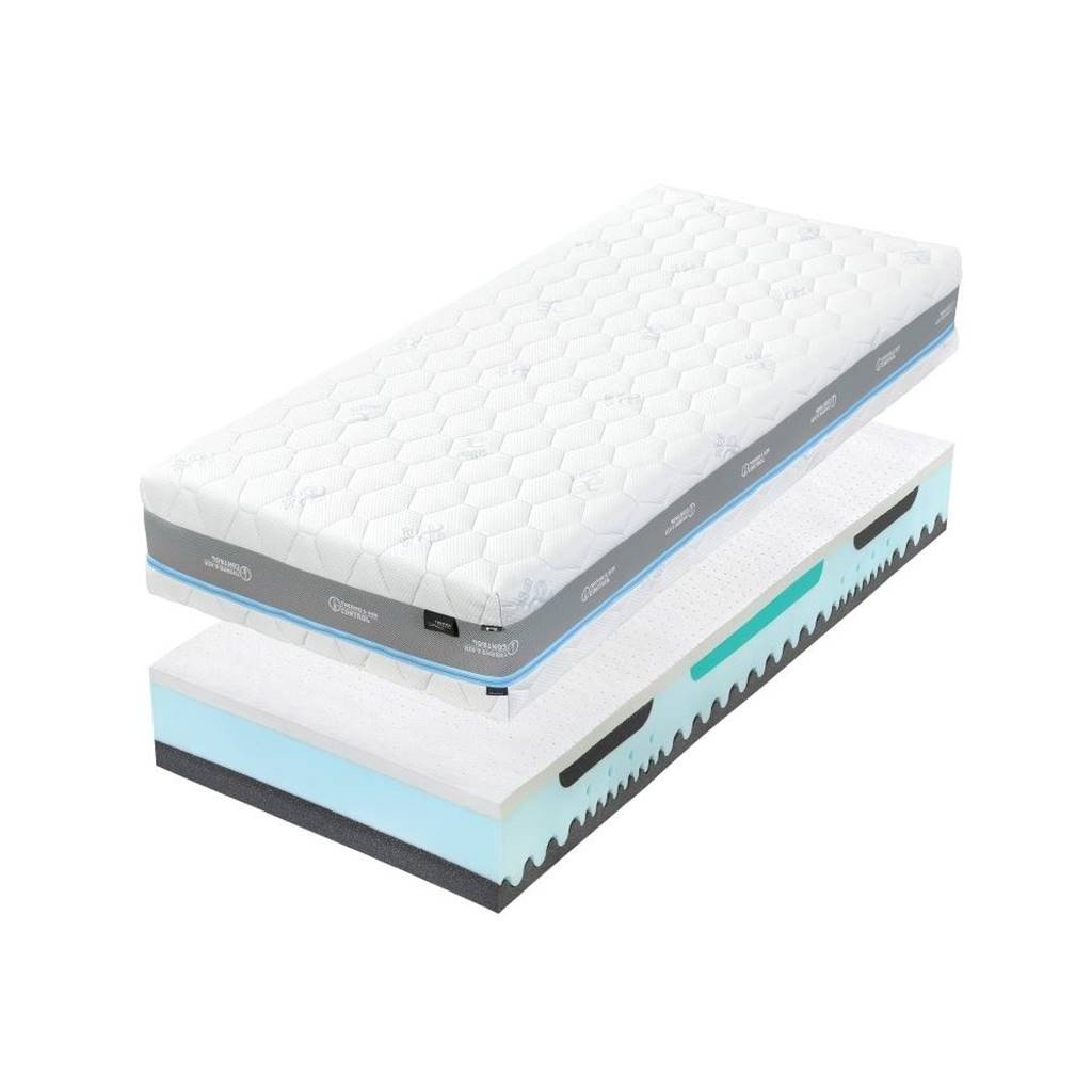 - Paměťová pěna (strana soft). Přináší pohodlí a odlehčení pohybového ústrojí. Poskytuje relaxaci znavenému tělu, odlehčuje klouby a uvolňuje svaly. Svojí vynikající schopností kopírovat kontury těla pomáhá udržet páteř v optimální poloze. Nelepená vrstva, která s každým pohybem těla provětrá celou matraci.