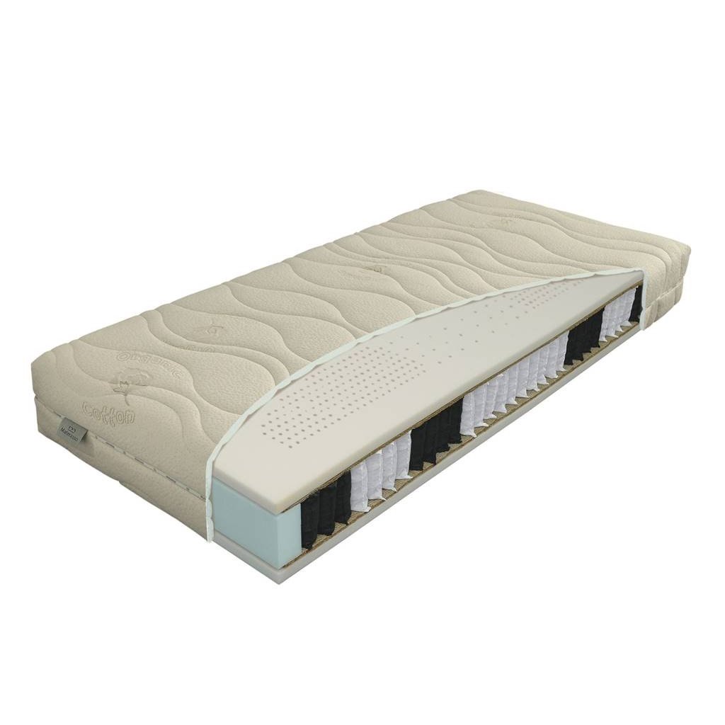 Taštičková matrace NATURA HYDROLATEX T4 je velmi luxusní taštičková matrace se 7 anatomickými zónami, která skýtá dokonalou oporu celému tělu. Jádro je tvořeno taštičkovými pružinami, které jsou uložené v netkané textilii. V kombinaci s luxusní, perforovanou pěnou hydrolatex je zaručena vynikající vzdušnost matrace, což je zárukou zdravého a komfortního spánku. Chráničem pružiny je Seacelové vlákno.Vrchní a spodní deska je z pěny HYDROLATEX. Matrace je dvoutuhostní - střední a tvrdší tuhost. Středně tvrdá deska má chranič pružiny z přírodního SEACELL vlákna. Tvrdší deska má chránič pružiny z přírodního kokosového vlákna.