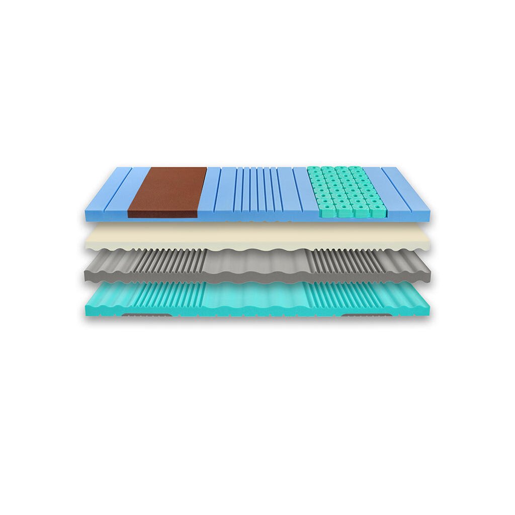 - Ramenní zóna AIR: XDURA 5 cm 58 kg/m3 dokonale kopírující a prodyšná, super odolná pěna s termoregulační funkcí.