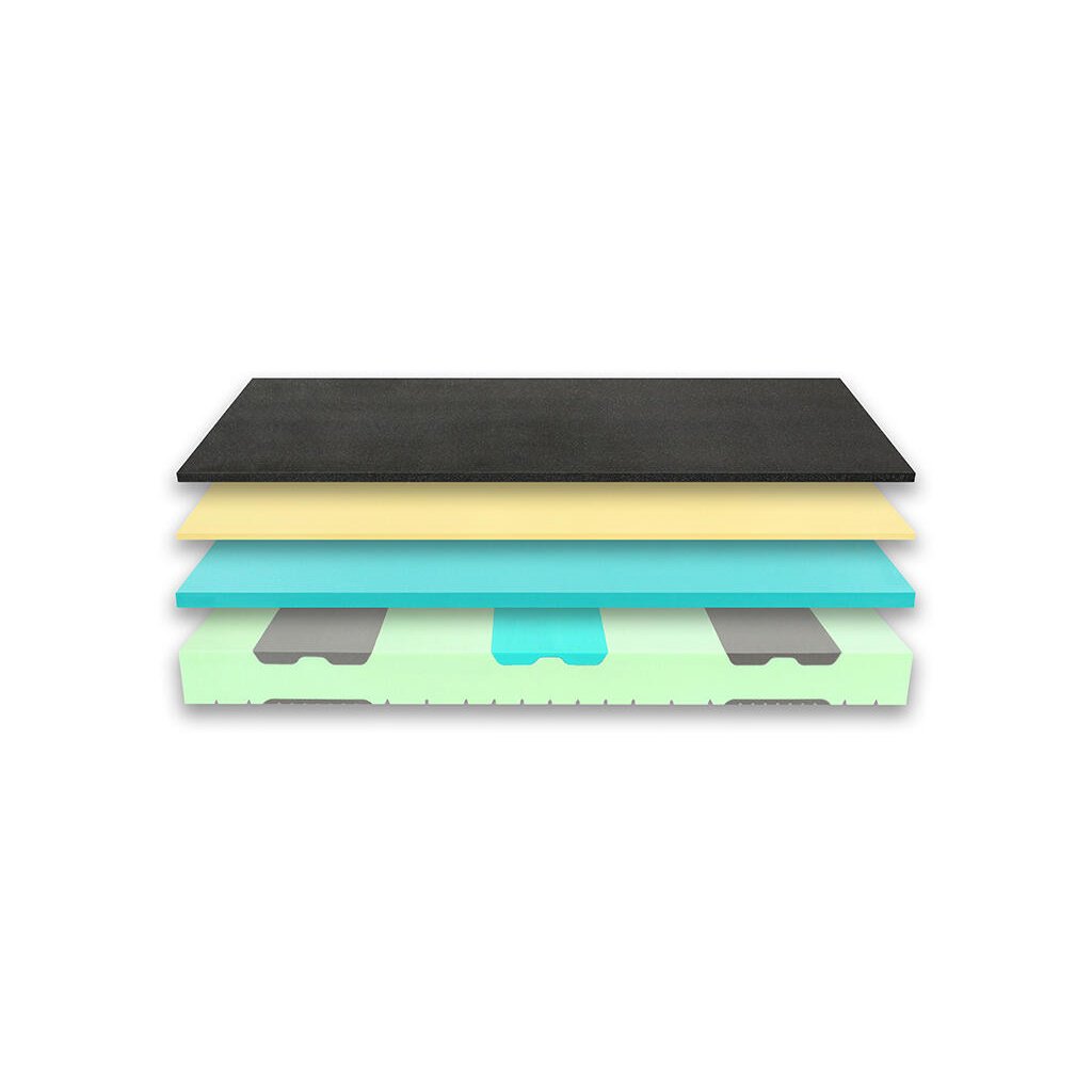 Objem materiálů (latex, studená pěna, pěna Flexifoam® SuperiorVolume a visco pěna) v matraci SPIRIT Superior je 35 - 65 kg/m3.