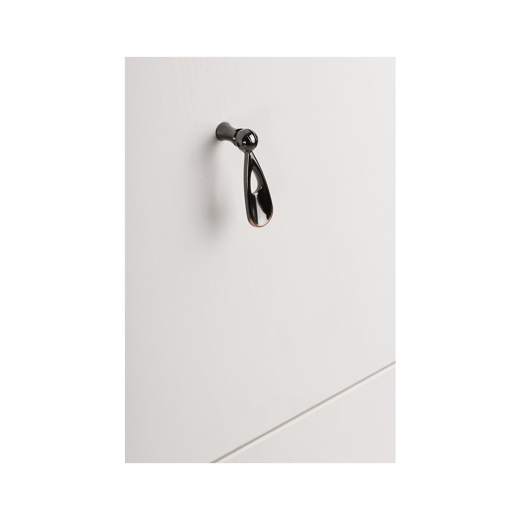 Prezentovaná skříňka je vyrobena z kvalitního borovicového dřeva, které se vyznačuje svou pevností, pružností, dlouhou životností a odolností vůči vlhku, což z něj dělá skvělou volbu do koupelny. Povrch borovice byl natřen bílou barvou, která modelu dodává čistý a svěží dojem. Skříňka se pyšní něžnými detaily v podobě jemně zakřivených linií a roztomilých úchytek, které modelu přidávají na eleganci.