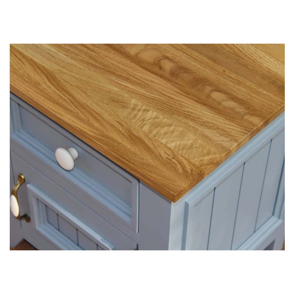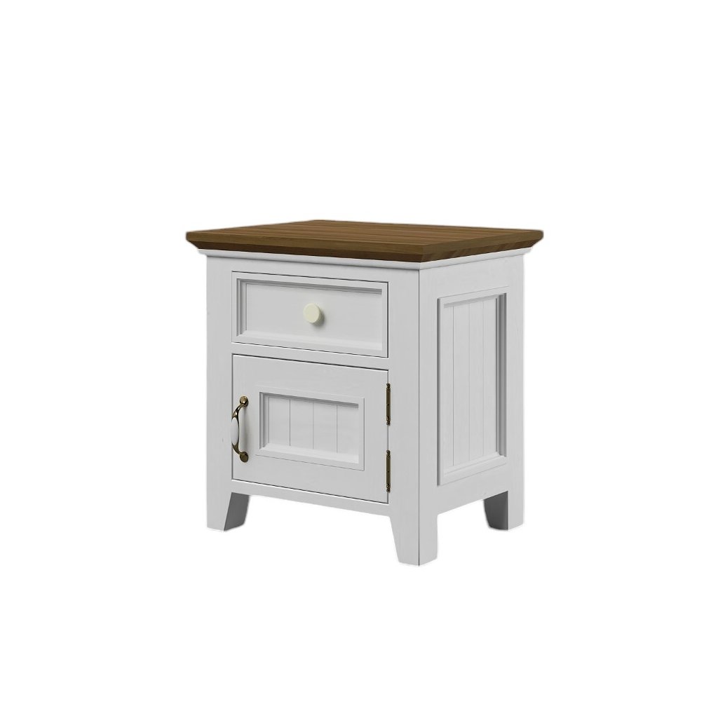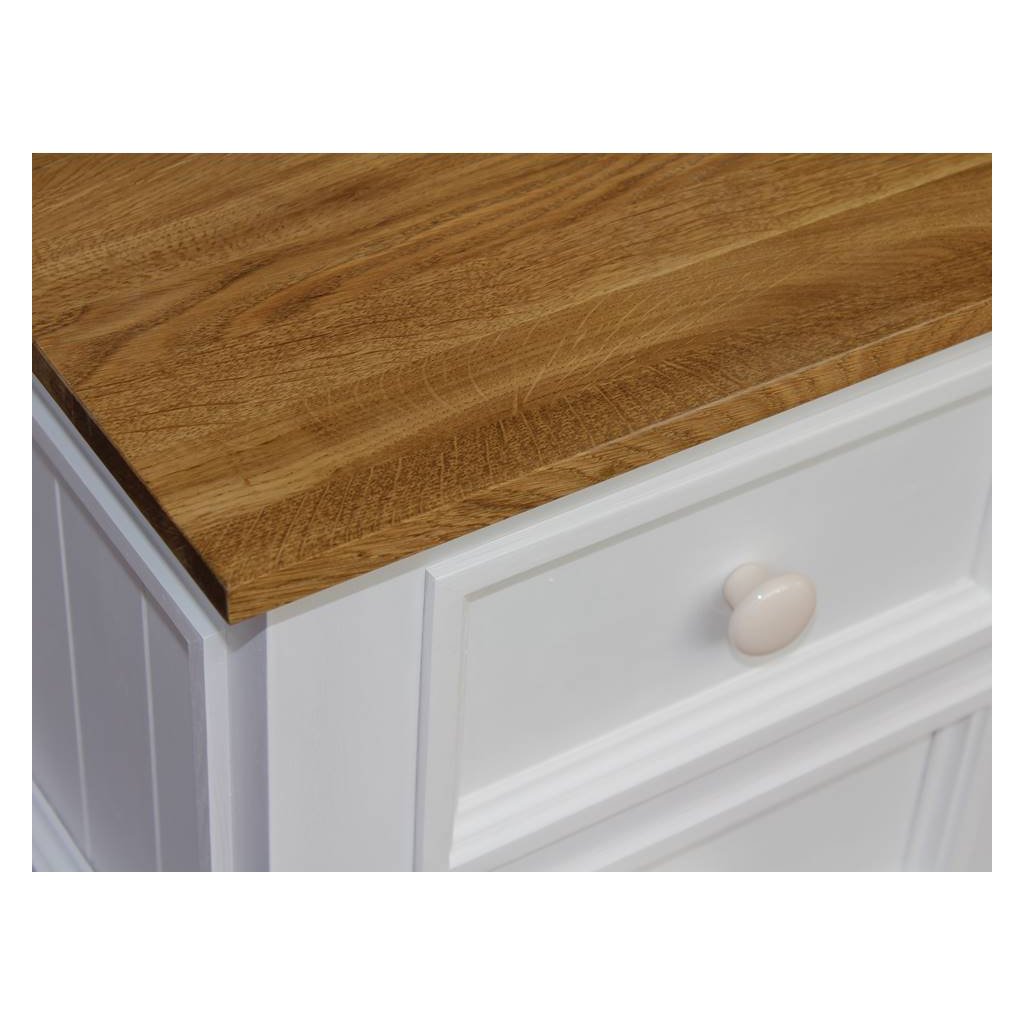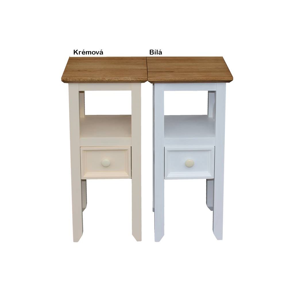 Masivní noční stolek PROVENCE je spojením bukového a dubového dřeva. Dubové dřevo (horní deska) je ošetřeno lakem a bukové dřevo je ošetřeno akrylovou barvou v bílé barvě. Šuplíky jsou bez pojezdu. Možnost objednání se systémem tichého dovírání (u šuplíků). Příplatek 810,- Kč (jeden pár).