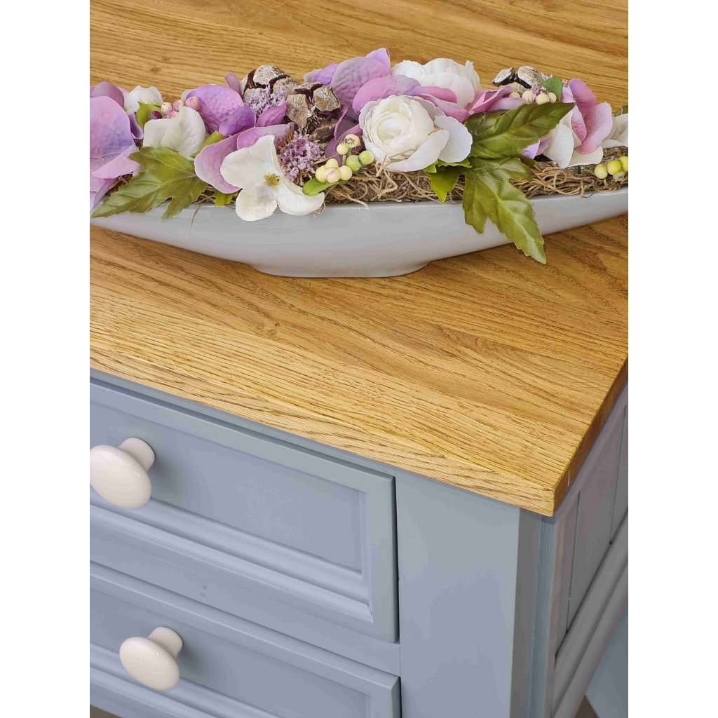 Nábytek kolekce PROVENCE je elegantní a vkusný nábytek v překrásném francouzském stylu. Nábytek je vyroben z velmi kvalitního bukového masivního dřeva a ošetřen akrylovou barvou v bílé, šedomodré, krémové a olivové barvě. Horní desky jsou vyrobeny z dubového masivního dřeva, které je ošetřeno lakem. Nábytek zvelebí veškerý interiér včetně obývacích pokojů, jídelen, ložnic a dalších místností Vašich domovů.