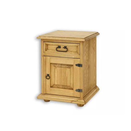 Noční stolek DEJ26 z borovicového masívu se ideálně hodí ke každé posteli. Má krásný pevný, masivní tvar. Jako úchytky jsou použité příjemné na dotyk kulaté knobky, které jsou taky vyrobeny z masivního borovicového dřeva.