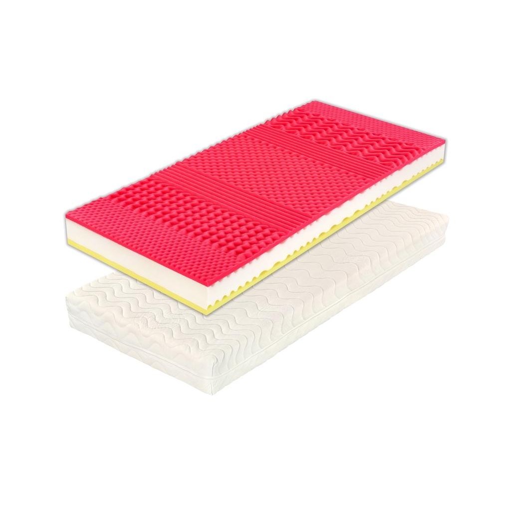 Měkčí strana Relax (červená) - anatomická masážní profilace (7 zón) pro masážní efekt a relaxaci zádového svalstva. Střední část jádra zaručuje díky vlnkám vysokou vzdušnost.