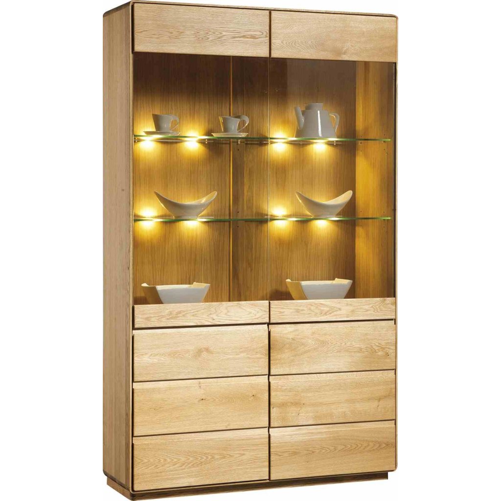 Kvalitní kování, kovové výsuvy zásuvek s tichým zavíráním i moderní design , jsou zárukou kvality. Sklo ve vitrínách a skleněné police jsou z čirého skla.
