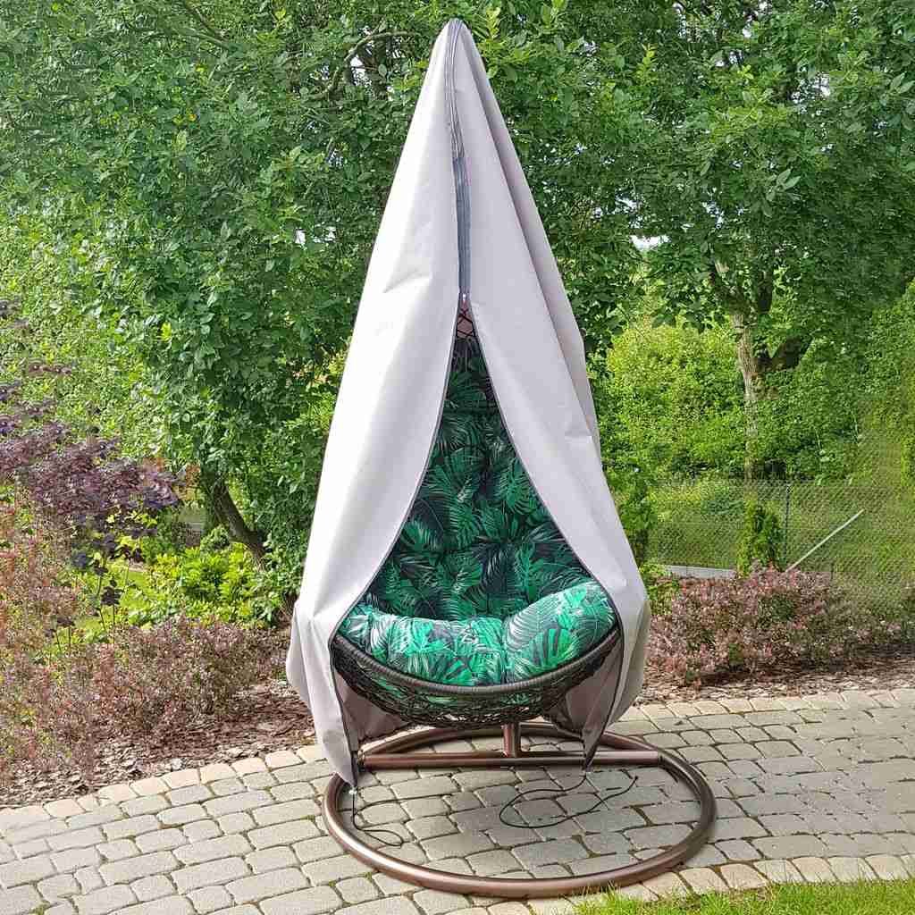 Kvalitní potah pro závěsné křeslo je vyroben z laminovaného polyesteru v příjemné béžovo-šedé barvě, poskytující vynikající ochranu proti nepříznivým vlivům počasí. Jeho odolnost a odolnost vůči vlhkosti, nečistotám, UV paprskům a větru zajišťuje dlouhodobou ochranu pro vaše křeslo. Potah je vybaven zipem pro snadné nasazení a sejmutí. Materiál je vyroben z polyesterové tkaniny s bezbarvým vodě odpudivým povlakem, který poskytuje účinnou ochranu před vlhkostí, i když není zaručena stoprocentní odolnost proti prudkému dešti.