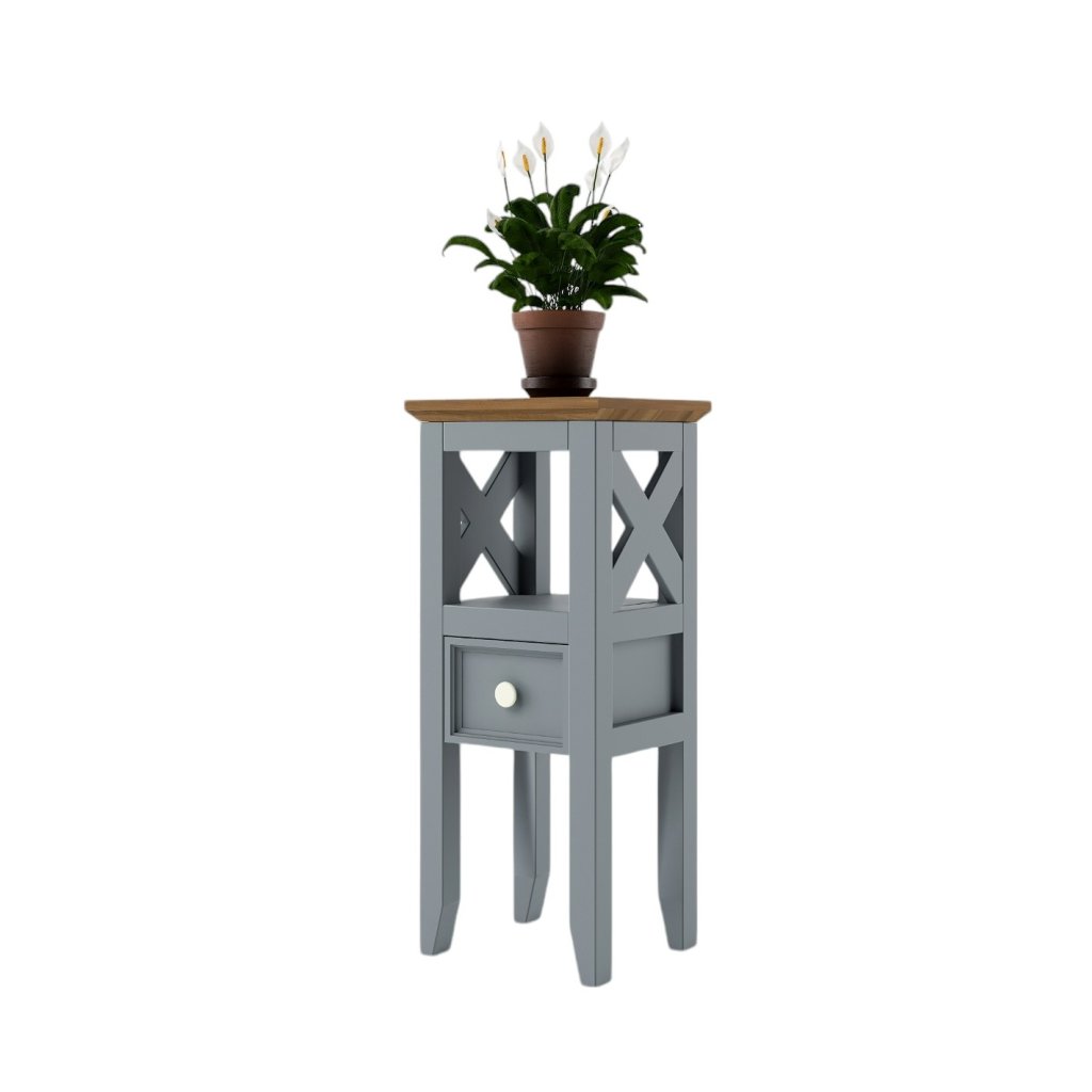Masivní stolek PROVENCE oceníte především jako stojan na kytku, anebo jako vysoký noční stolek v prostorách ložnice.