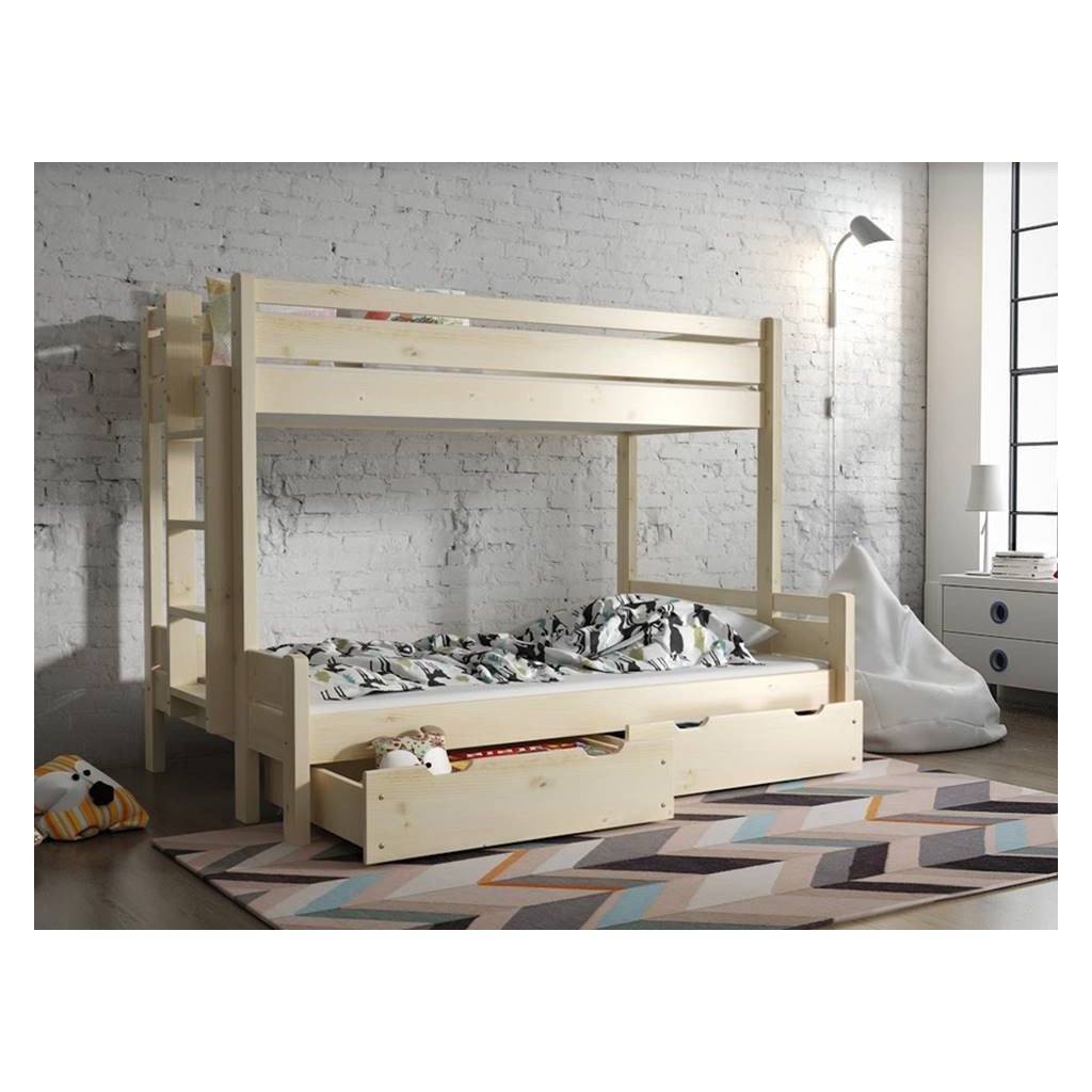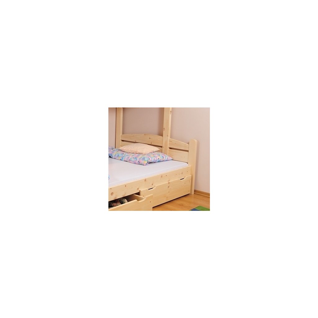 Patrová postel Jarda je určená až pro 3 osoby jakékoliv věkové kategorie. Je ručně vyrobená ze smrkového masivního dřeva, spojuje se pomocí mosazných šroubů a dřevěných kolíků. Postel vyniká svou robustní a odolnou konstrukci lůžka, má masivní a stabilní nohy (4,5 x 9 cm). Z hlediska bezpečnosti oceníte zaoblené hrany a bezpečnostní bariéry (15cm, přední i zadní). Součásti postele jsou 2 hluboké a prostorné zásuvky na kolečkách, které jdou zcela vytáhnout z pod postele. Na lakování postele jsou použity ekologické barvy ředitelné vodou, díky kterým si postel zachová hezký a dlouhotrvající lesk.