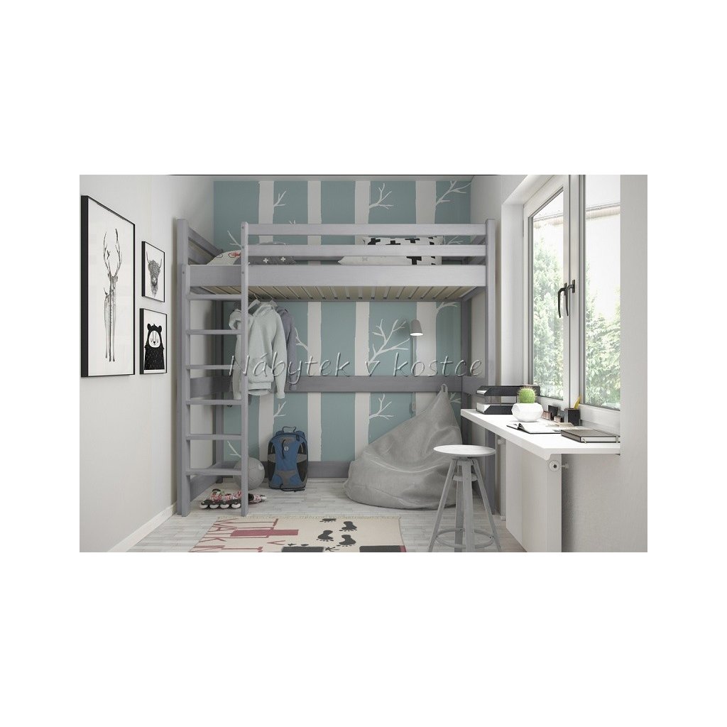 Vyvýšená postel ANDY je vhodná zejména do menších pokojů, kde využijete praktický postel pod postelí, kde se dá vložit skříňka, stůl, křeslo nebo skříň s maximální výškou 151 cm. Ocenitelný je robustní a stabilní žebřík.